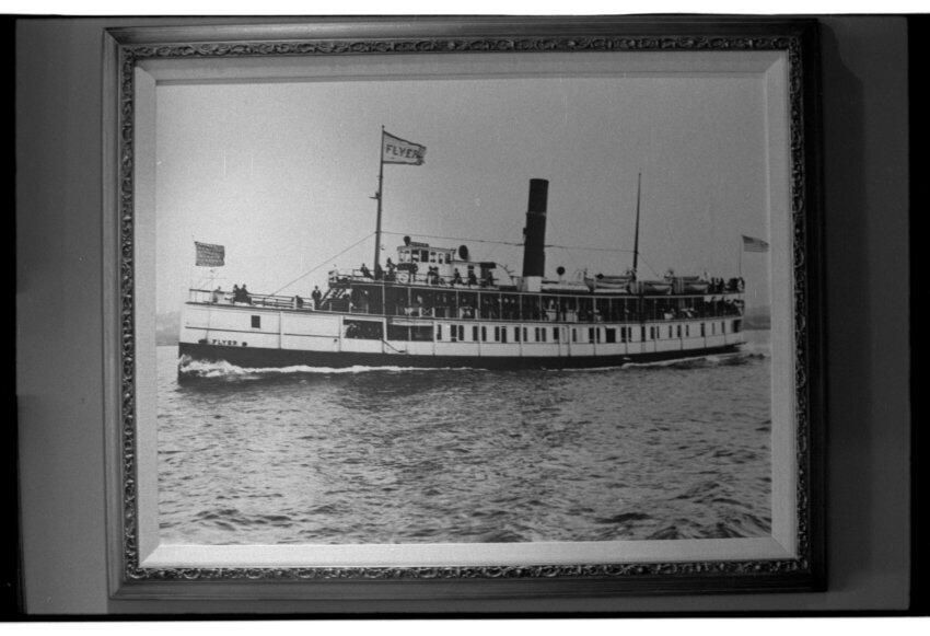 Negative, sheet film. 1 x 1.5 b&w. Oly Brew. Framed photo inventory. Steamboat Flyer.