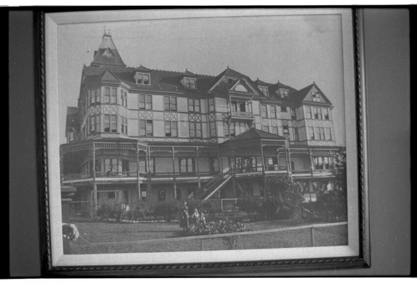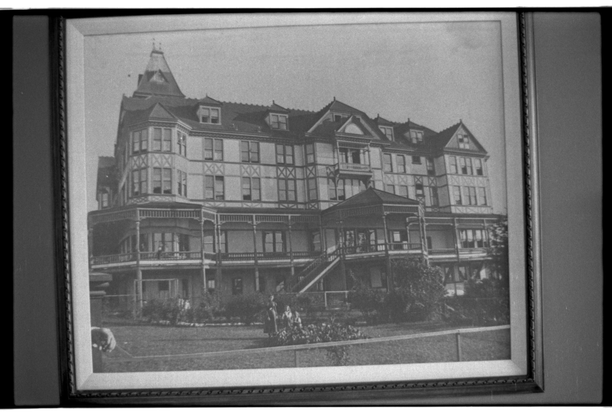 Negative, sheet film. 1 x 1.5 b&w. Oly Brew. Framed photo inventory. Hotel Olympia.