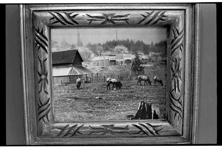 Negative, sheet film. 1 x 1.5 b&w. Oly Brew. Framed photo inventory. Wildlife park at upper falls of Deschutes.