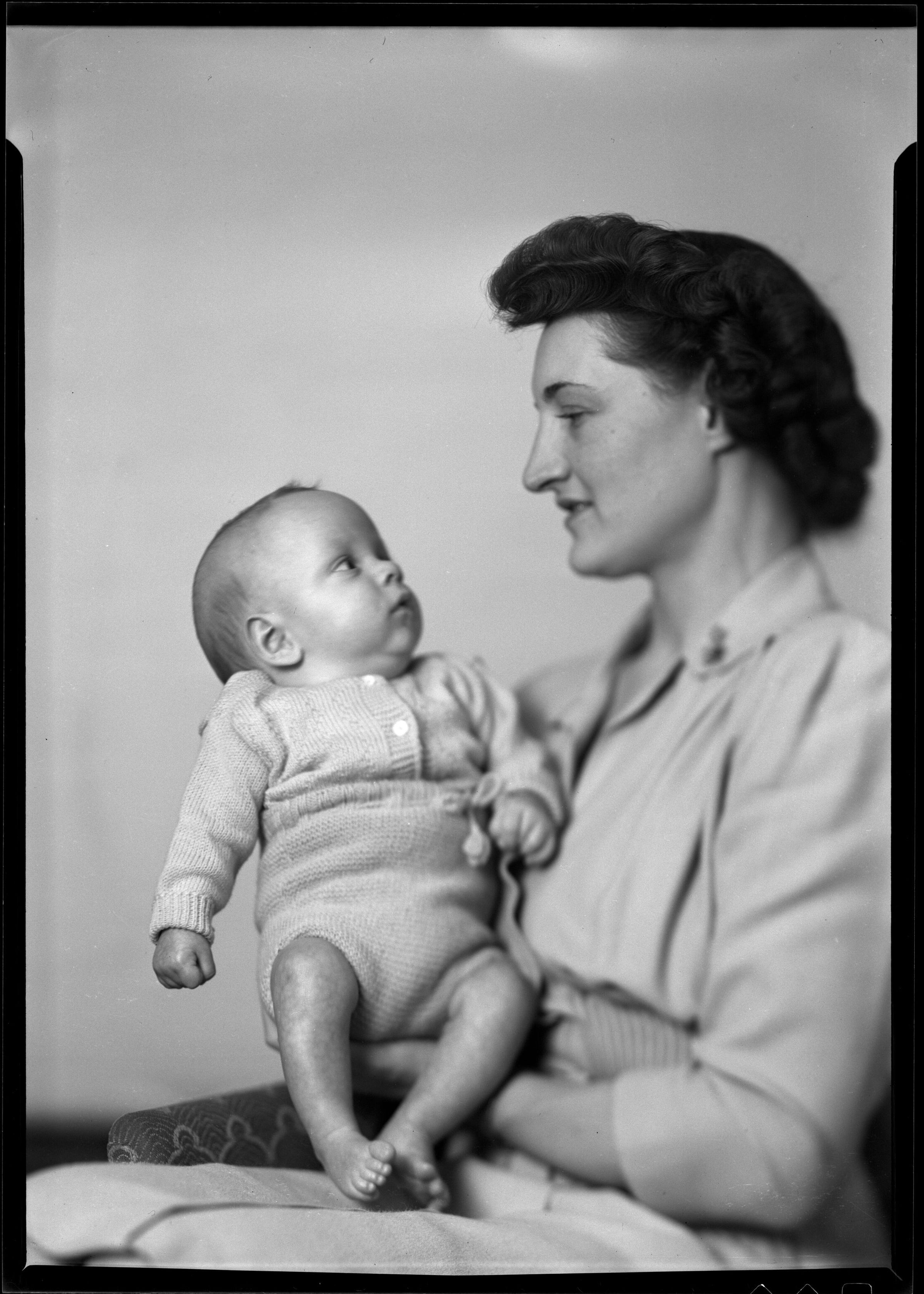 Negative, sheet film. 7 x 5 b&w. No. 10671. Nick Schmidt, and mother Viriginia Schmidt (wife of Bink).