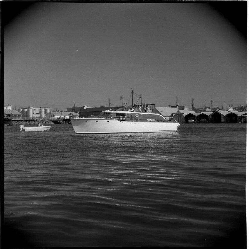 Negative, sheet film. 2.25 x 2.25 b&w. No. 583. Yachters. Alaska Hunter owned by Ed Binger.