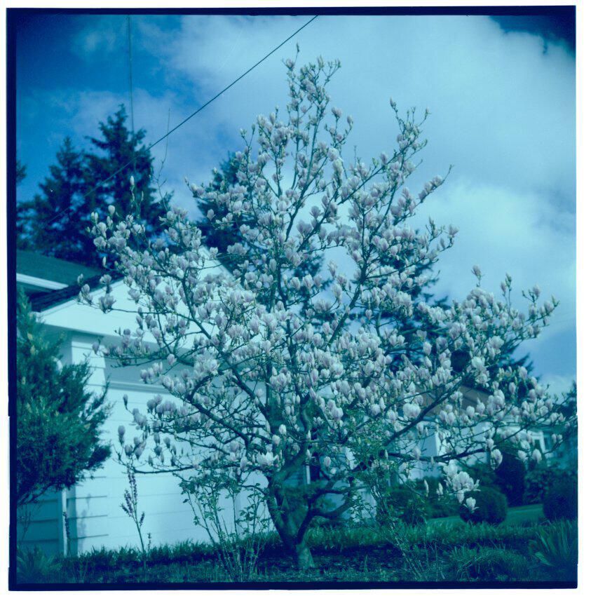 Negative, sheet film. 2.25 x 2.25 color. No. 623. Magnolia in bloom, possibly on Tumwater Hill.