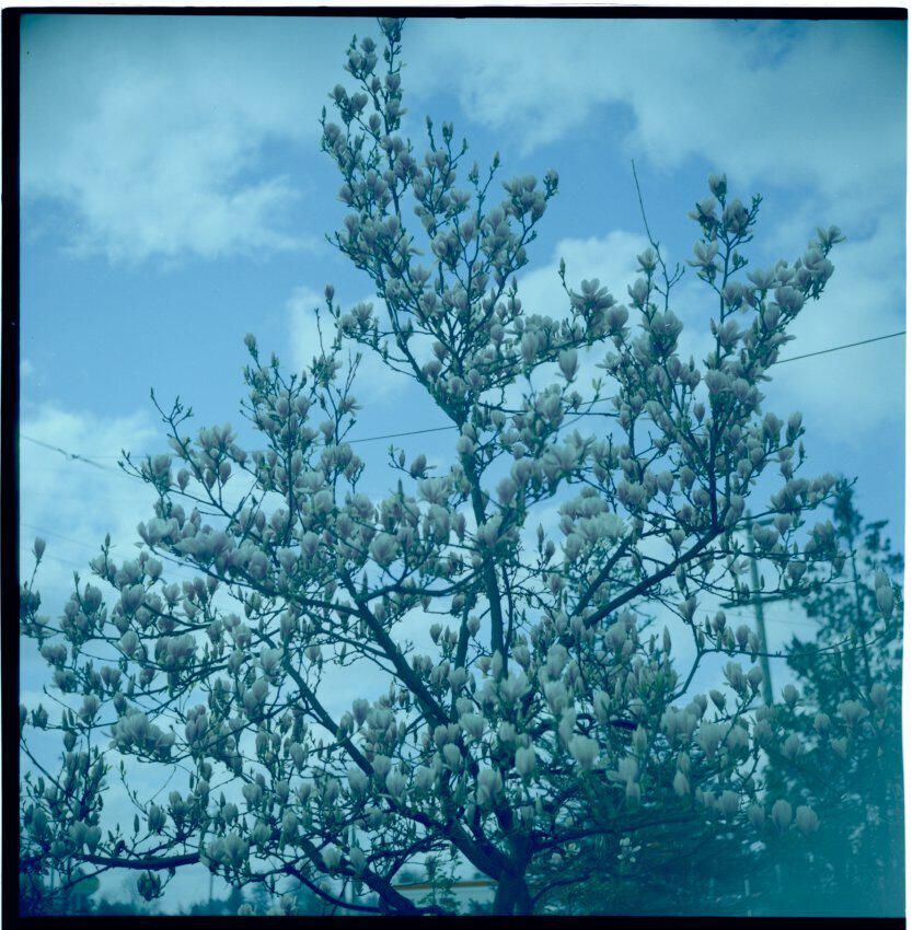 Negative, sheet film. 2.25 x 2.25 color. No. 623. Magnolia in bloom, possibly on Tumwater Hill.
