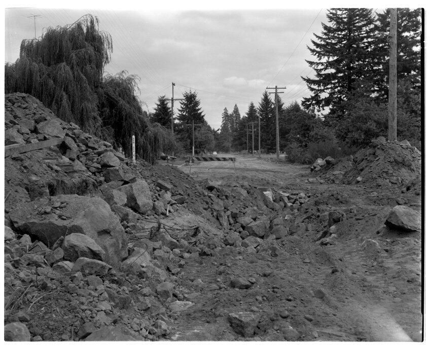 Negative, sheet film. 2.25 x 2.25 b&w. No. 328. Sewer project, Tumwater. Fall, 1955