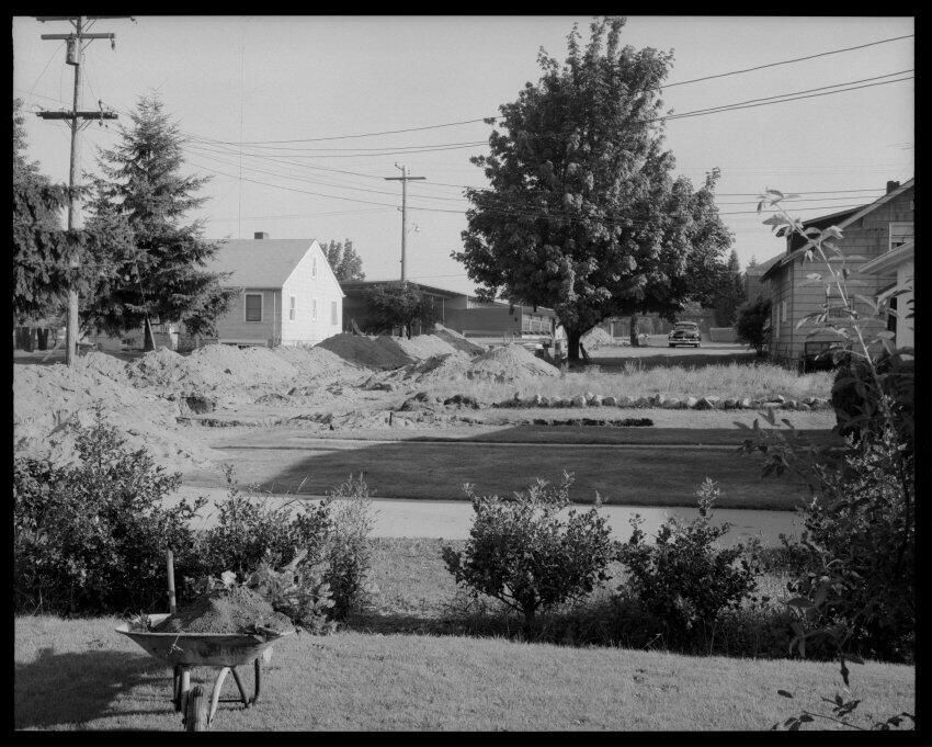 Negative, sheet film. 4 x 5 b&w. No. 328. Sewer project, Tumwater. Fall, 1955