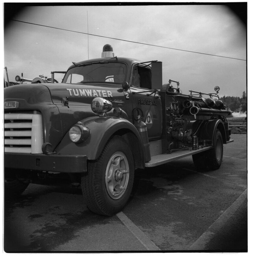 Negative, sheet film. 2.25 x 2.25 b&w. No. 541. Tumwater Fire Department truck.