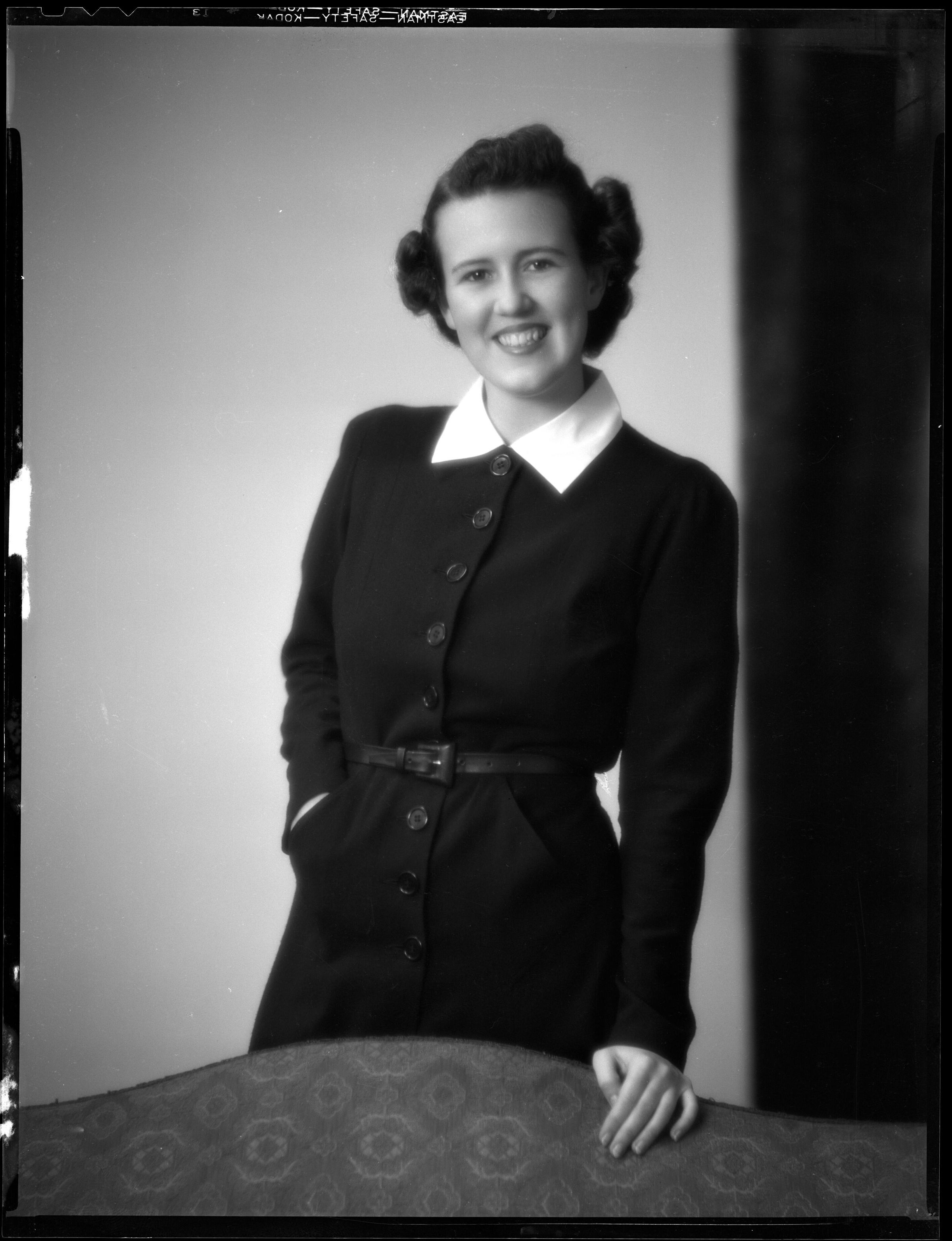 Negative, sheet film. 8.5 x 6.5 b&w. No. 2993. Waynette Bridgford, wife of Bump Schmidt.