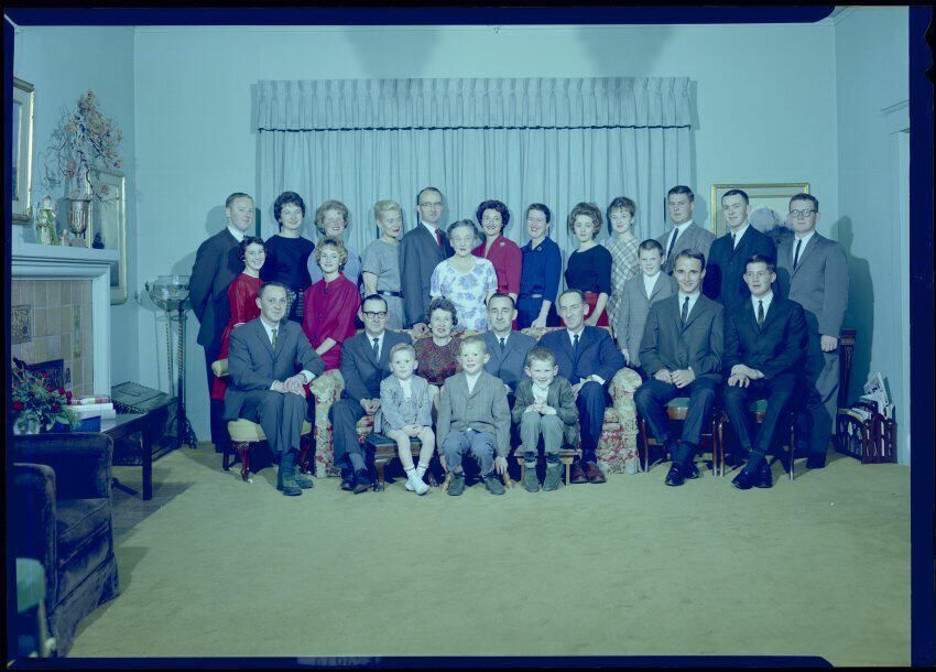 Negative, sheet film. 5 x 7 color. No. P662. Mrs. Adolph Schmidt. Christmas picture in color at home. Picture ordered 08/29/1962 from National Color Lab. Exposed with clear flash, no filter.