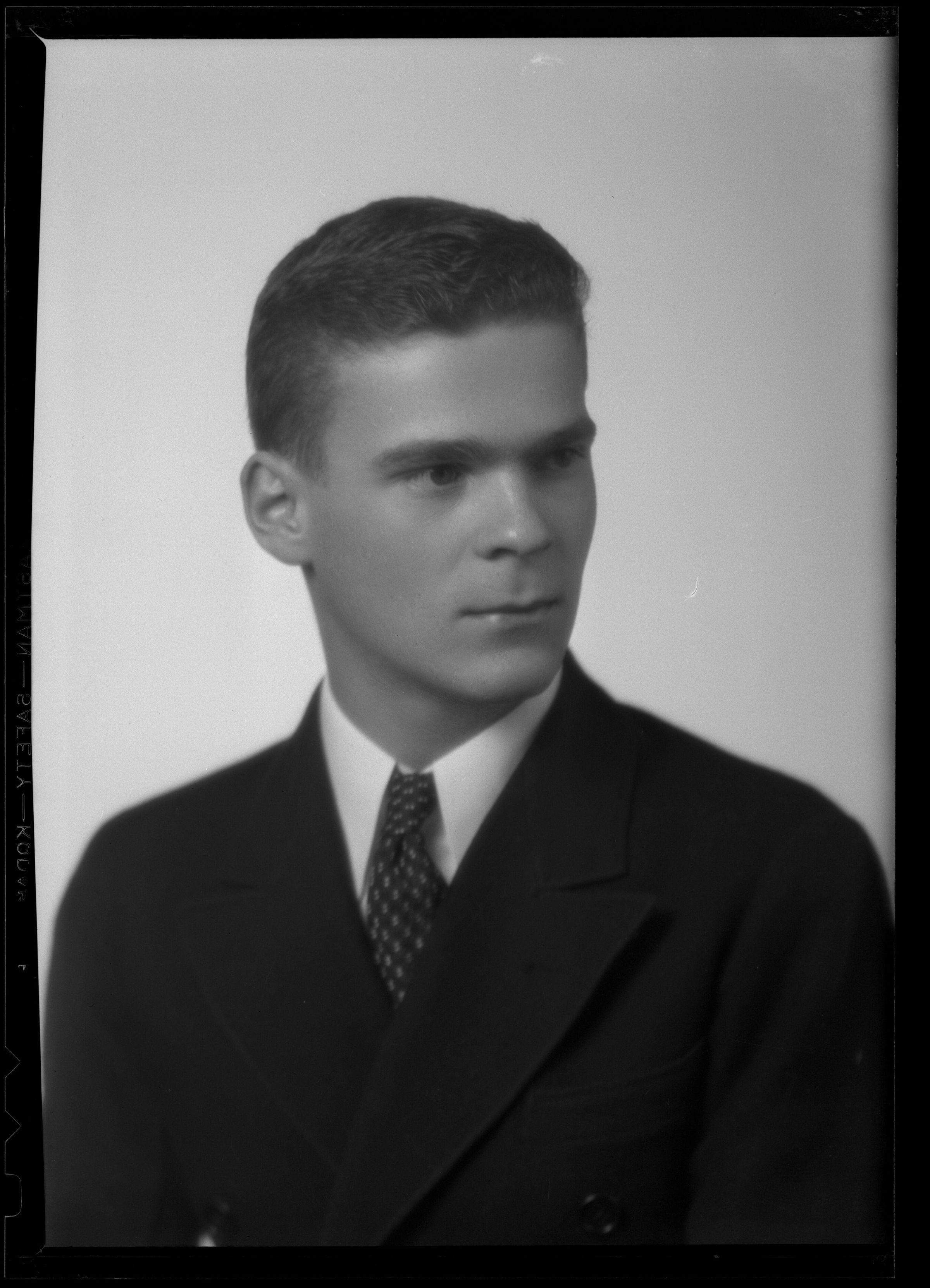Negative, sheet film. 5 x 3.5 b&w. No. 4484. Buzzie Schmidt. School. Retouched 05/01/1939.