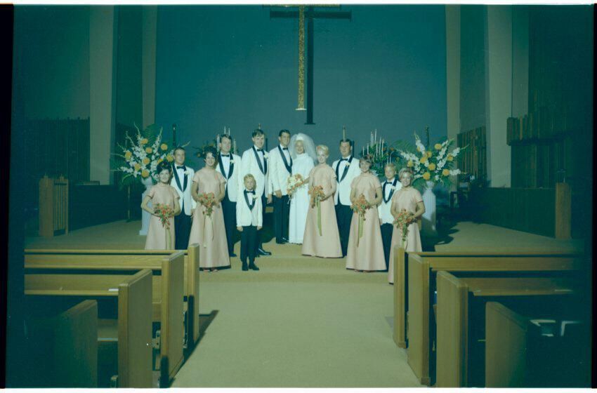Negative, sheet film. 3.25 x 2.25 color. No. W315. Mr. and Mrs. Frank Schmidt. Color wedding. Received 03/26/1969, sent to M & L 04/03/1969. Wedding of Frank Schmidt and Susan Backman, August 17, 1968.Name/Title