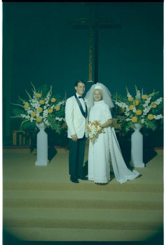 Negative, sheet film. 3.25 x 2.25 color. No. W315. Mr. and Mrs. Frank Schmidt. Color wedding. Received 03/26/1969, sent to M & L 04/03/1969. Wedding of Frank Schmidt and Susan Backman, August 17, 1968.Name/Title