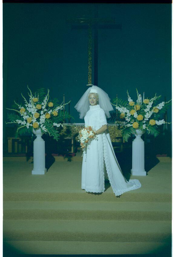 Negative, sheet film. 3.25 x 2.25 color. No. W315. Mr. and Mrs. Frank Schmidt. Color wedding. Received 03/26/1969, sent to M & L 04/03/1969. Wedding of Frank Schmidt and Susan Backman, August 17, 1968.Name/Title