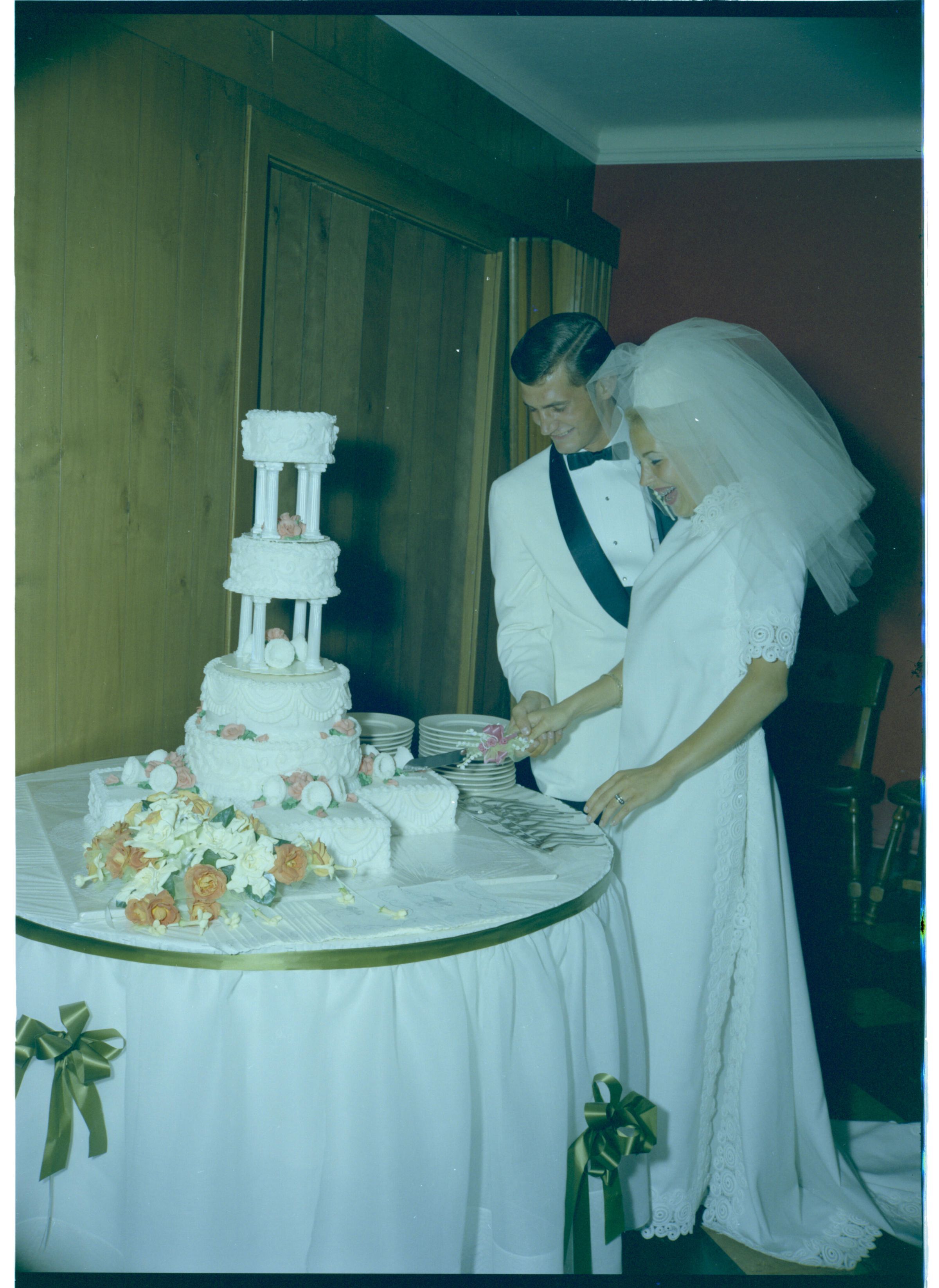 Negative, sheet film. 3.25 x 2.25 color. No. W315. Mr. and Mrs. Frank Schmidt. Color wedding. Received 03/26/1969, sent to M & L 04/03/1969. Wedding of Frank Schmidt and Susan Backman, August 17, 1968.Name/Title