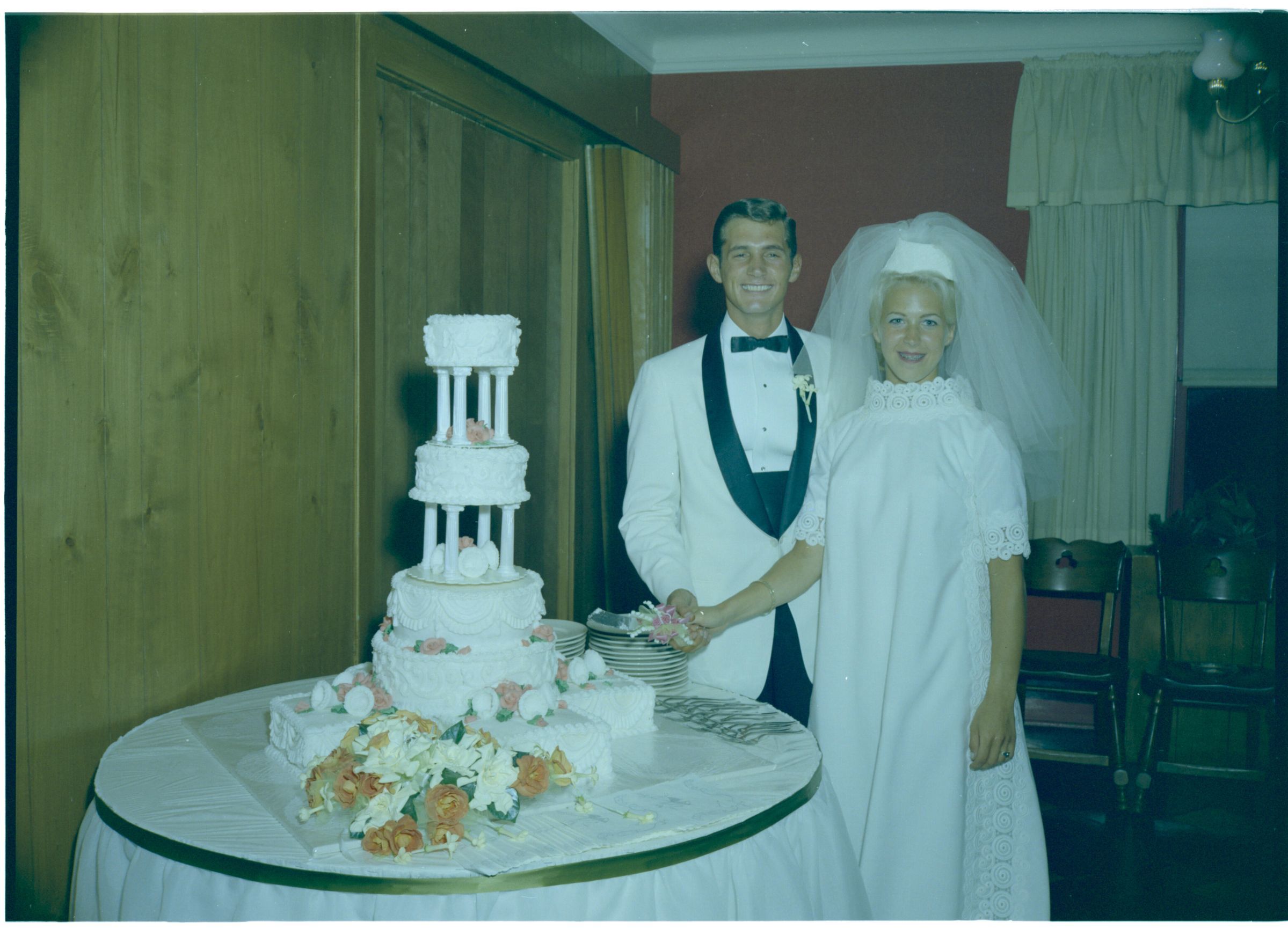 Negative, sheet film. 3.25 x 2.25 color. No. W315. Mr. and Mrs. Frank Schmidt. Color wedding. Received 03/26/1969, sent to M & L 04/03/1969. Wedding of Frank Schmidt and Susan Backman, August 17, 1968.Name/Title
