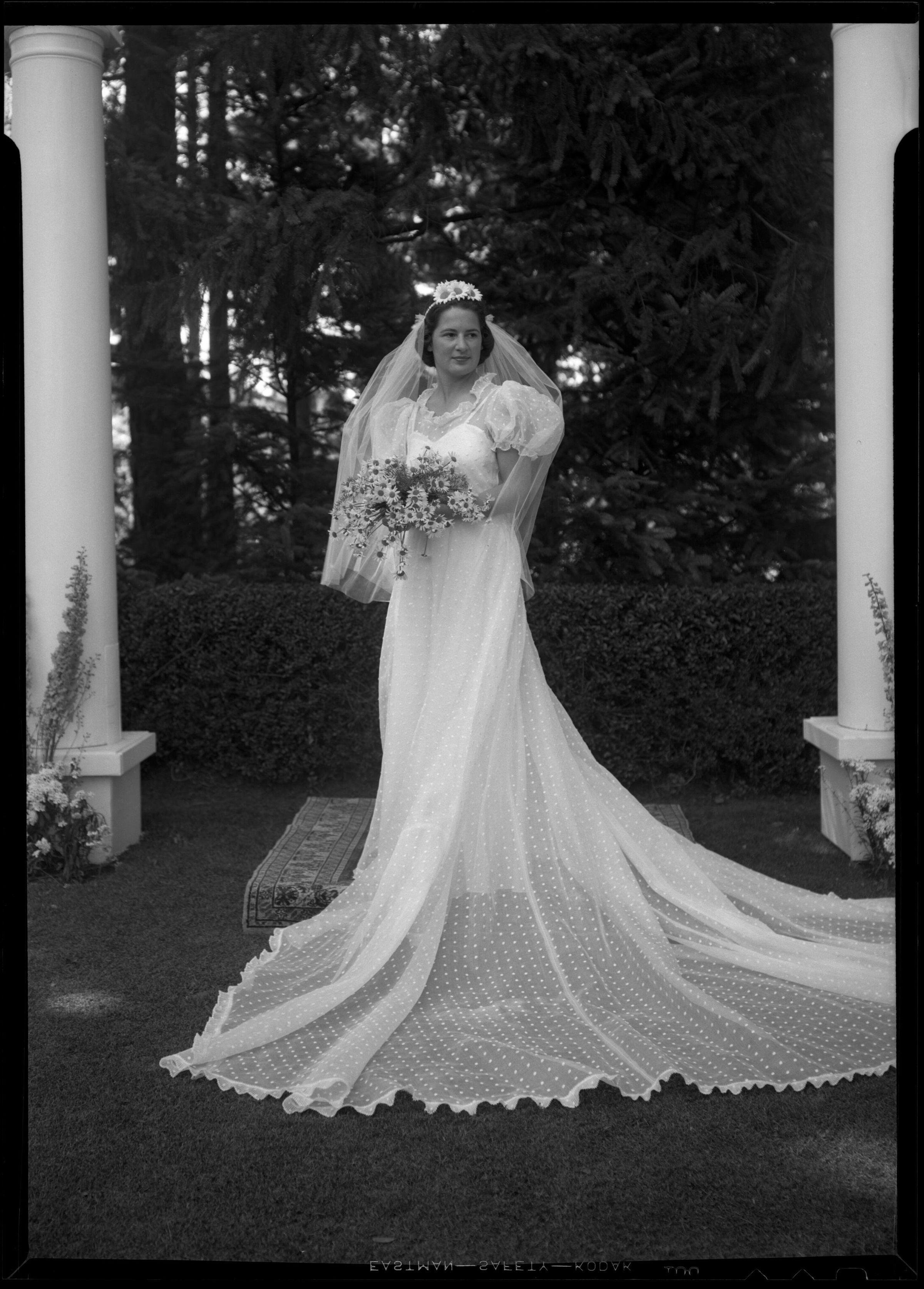 Negative, sheet film. 5 x 7 b&w. No. 4612. Mrs. Edward Allen Stookey nee Margaret Gradie Schmidt. Wedding on July 8, 1939 at Schmidt House.