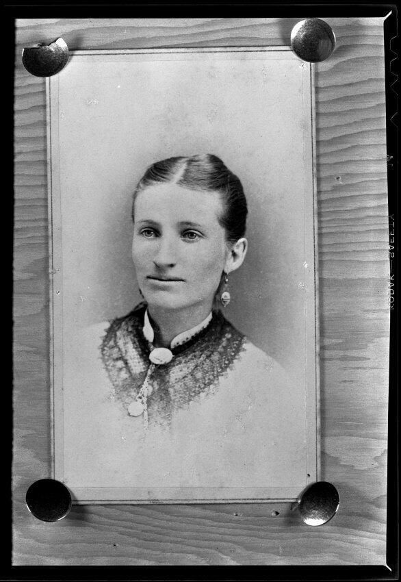 Negative, sheet film. 5 x 3.5 b&w. Mrs. Fritz Schmidt. Copied 03/20/1950. Order finished Tues Mar 28. No ID.