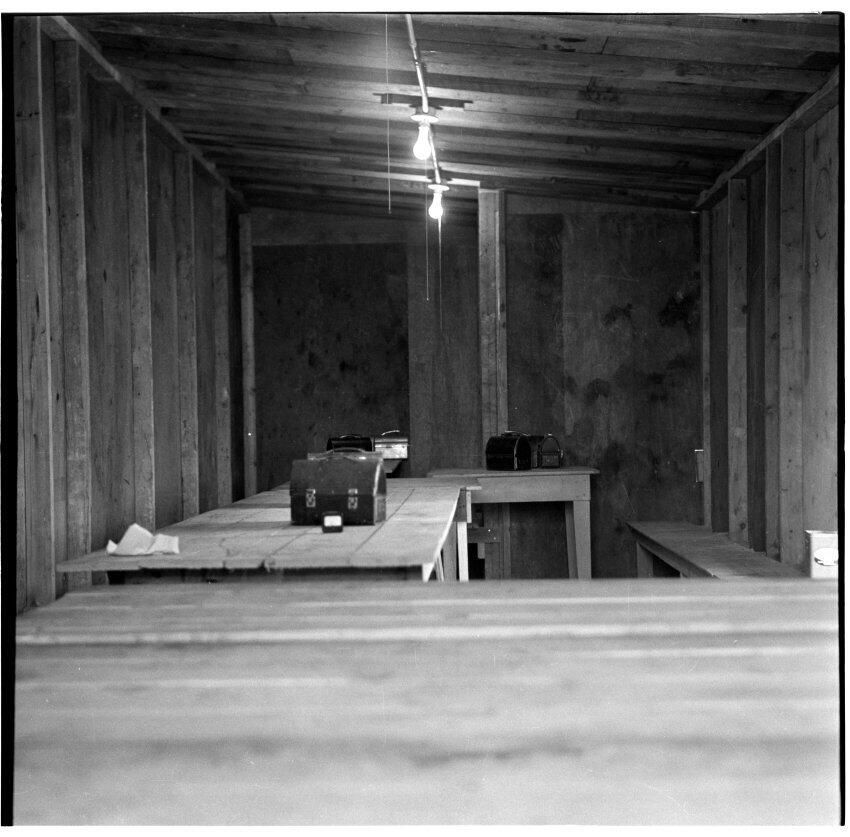 Negative, sheet film. 2.25 x 2.25 b&w. Unidentified construction space.