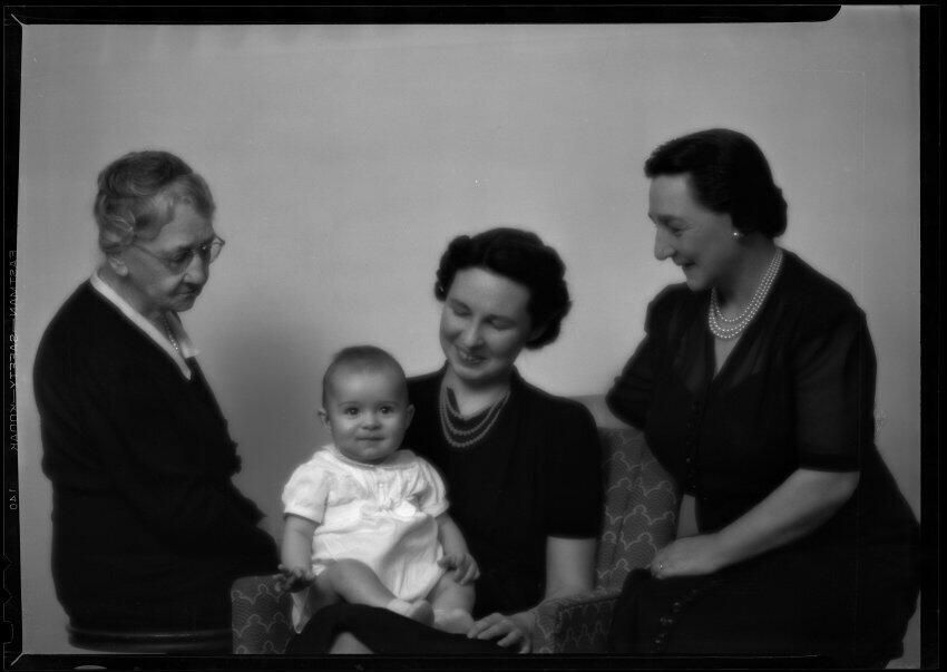 Negative, sheet film. 5 x 7 b&w. No. 6065. Mrs. Adolph Schmidt. Order finished July 7. At right is Winifred Schmidt.