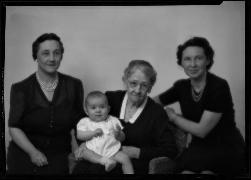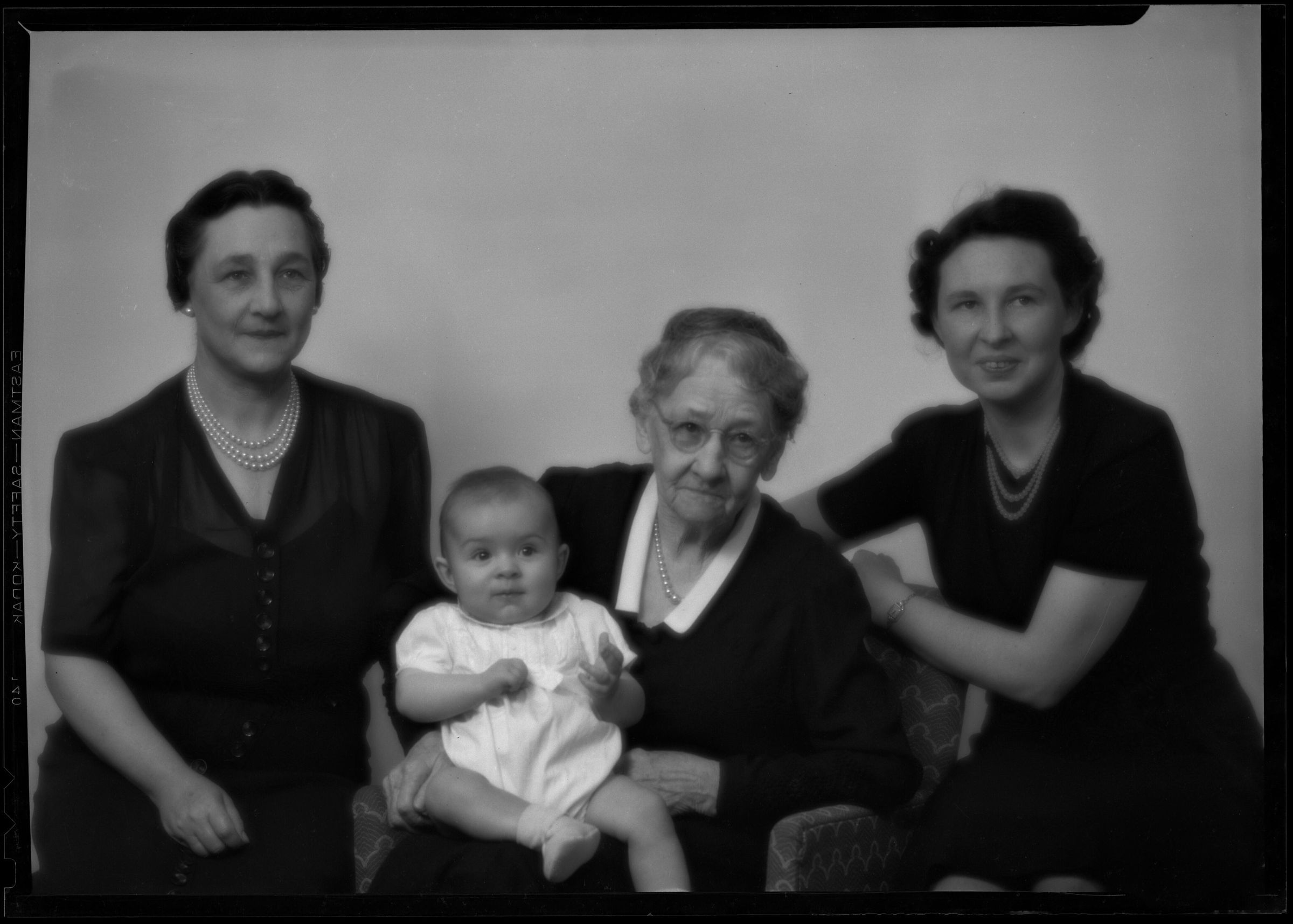 Negative, sheet film. 5 x 7 b&w. No. 6065. Mrs. Adolph Schmidt. Order finished July 7. At left is Winifred Schmidt.