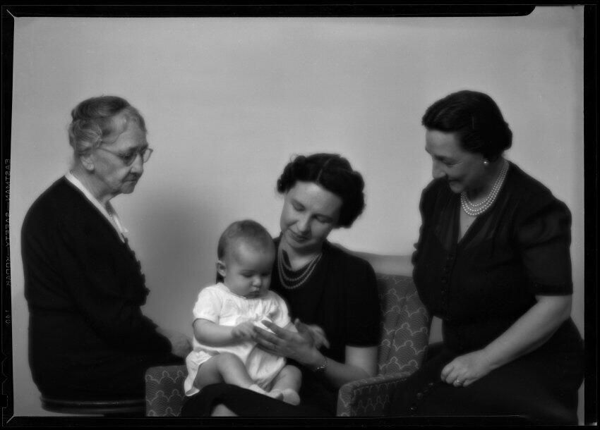 Negative, sheet film. 5 x 7 b&w. No. 6065. Mrs. Adolph Schmidt. Order finished July 7. At right is Winifred Schmidt.