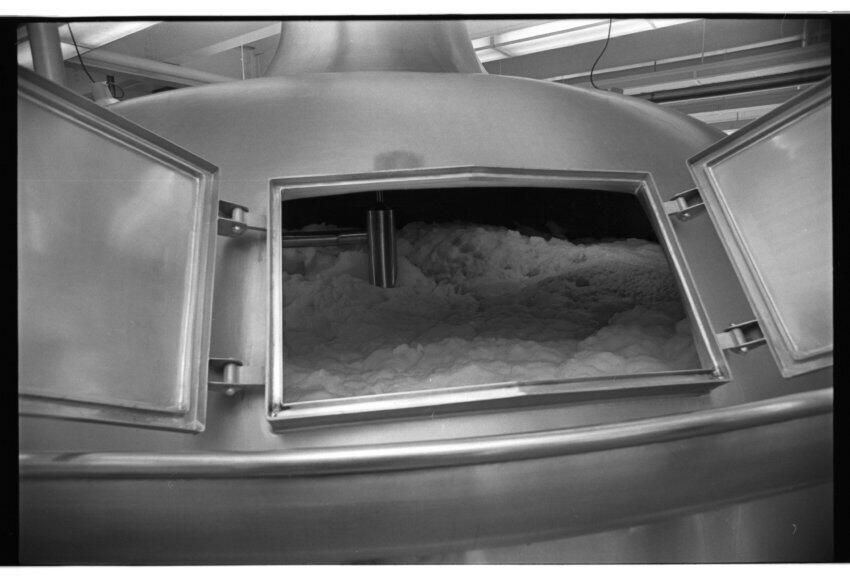 Negative, sheet film. 1 x 1.5 b&w. Brew kettle under full boil. When rolling boil is achieved, foam dissipates.