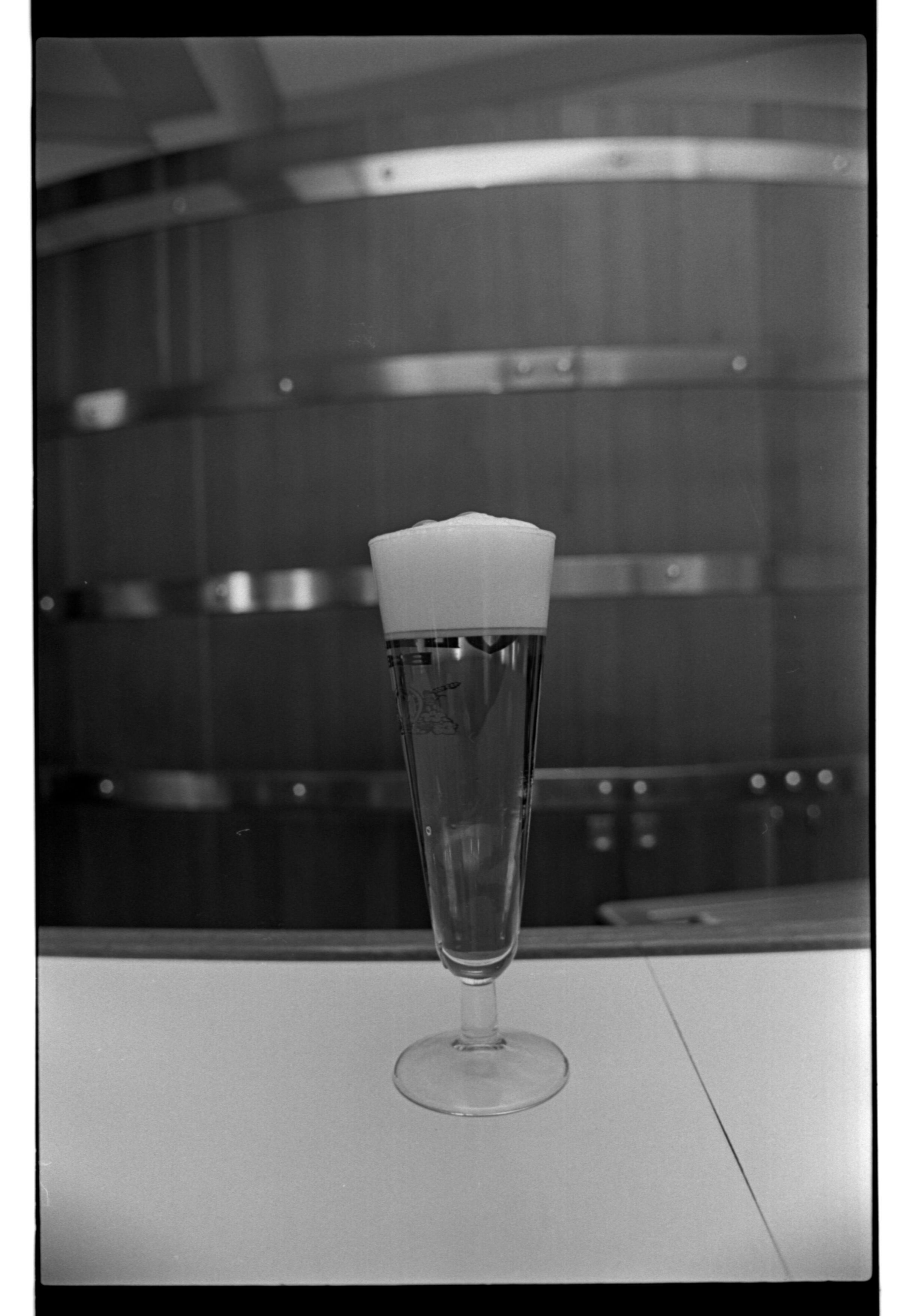 Negative, sheet film. 1 x 1.5 b&w. Glass of beer in Hospitality Room.