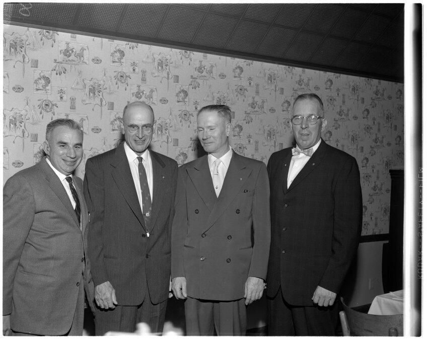 Negative, sheet film. 4 x 5 b&w. No. 3525. Olympia Brewing Company old timers banquet. Retouched 11/21/1959. No ID on people.