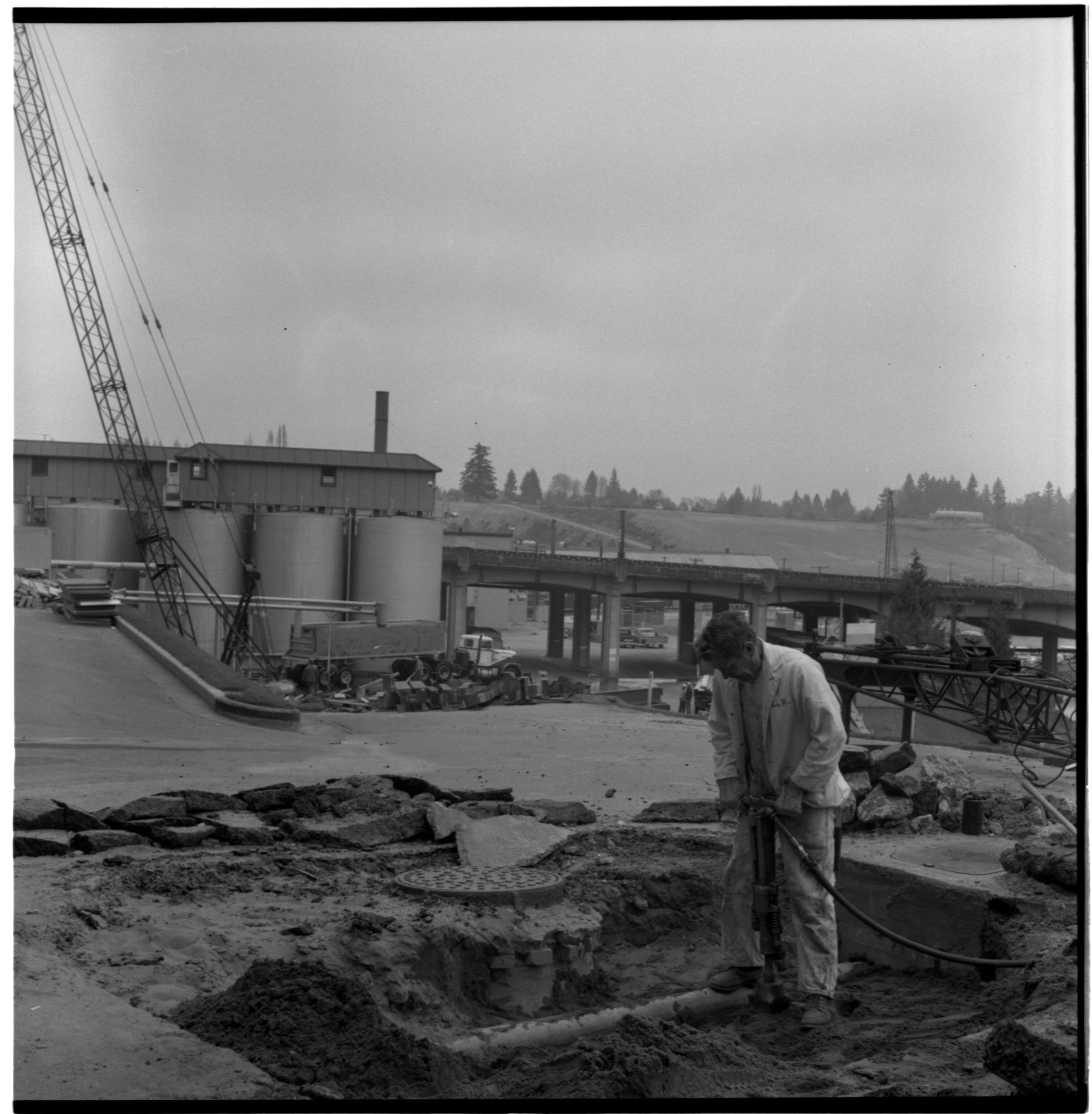 Negative, sheet film. 2.25 x 2.25 b&w. No. 6716. Walt Ovens. Construction or repair, possibly on sewer line.