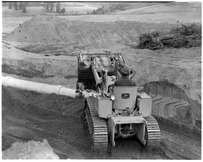 Negative, sheet film. 4 x 5 b&w. No. 6887. Certain-Teed Products Corp. (Cascade heating and plumbing, Olympia Brewery). One pipe was from well field to million-gallon storage tank; the other was for water from tank to brewery.Name/Title
