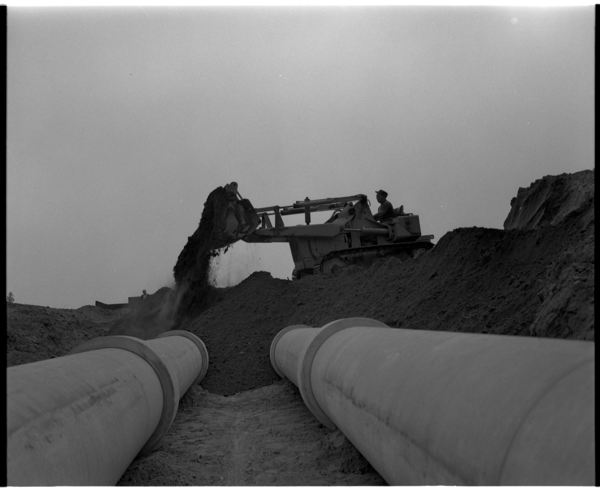 Negative, sheet film. 2.25 x 2.75 b&w. No. 6887. Certain-Teed Products Corp. (Cascade heating and plumbing, Olympia Brewery). Probably water pipeline from well field.