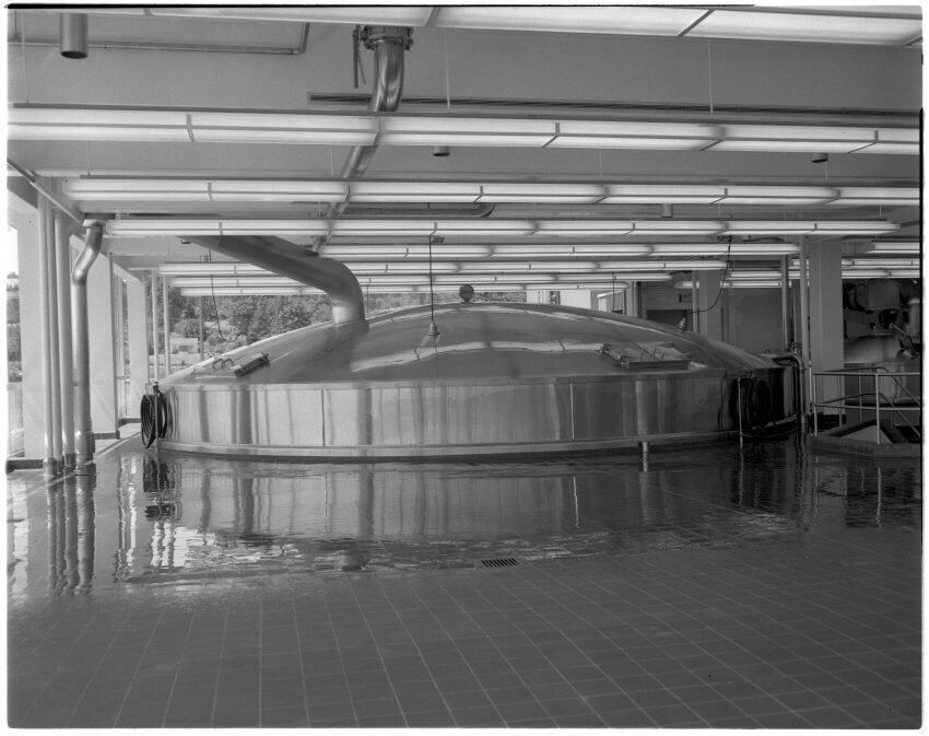 Negative, sheet film. 4 x 5 b&w. No. 7105. Oly. Brewing Co. PSF. Industries. Mr. Dexter. At the time, this was the world's largest lauter tub. 36 feet diameter, held 810 barrels.