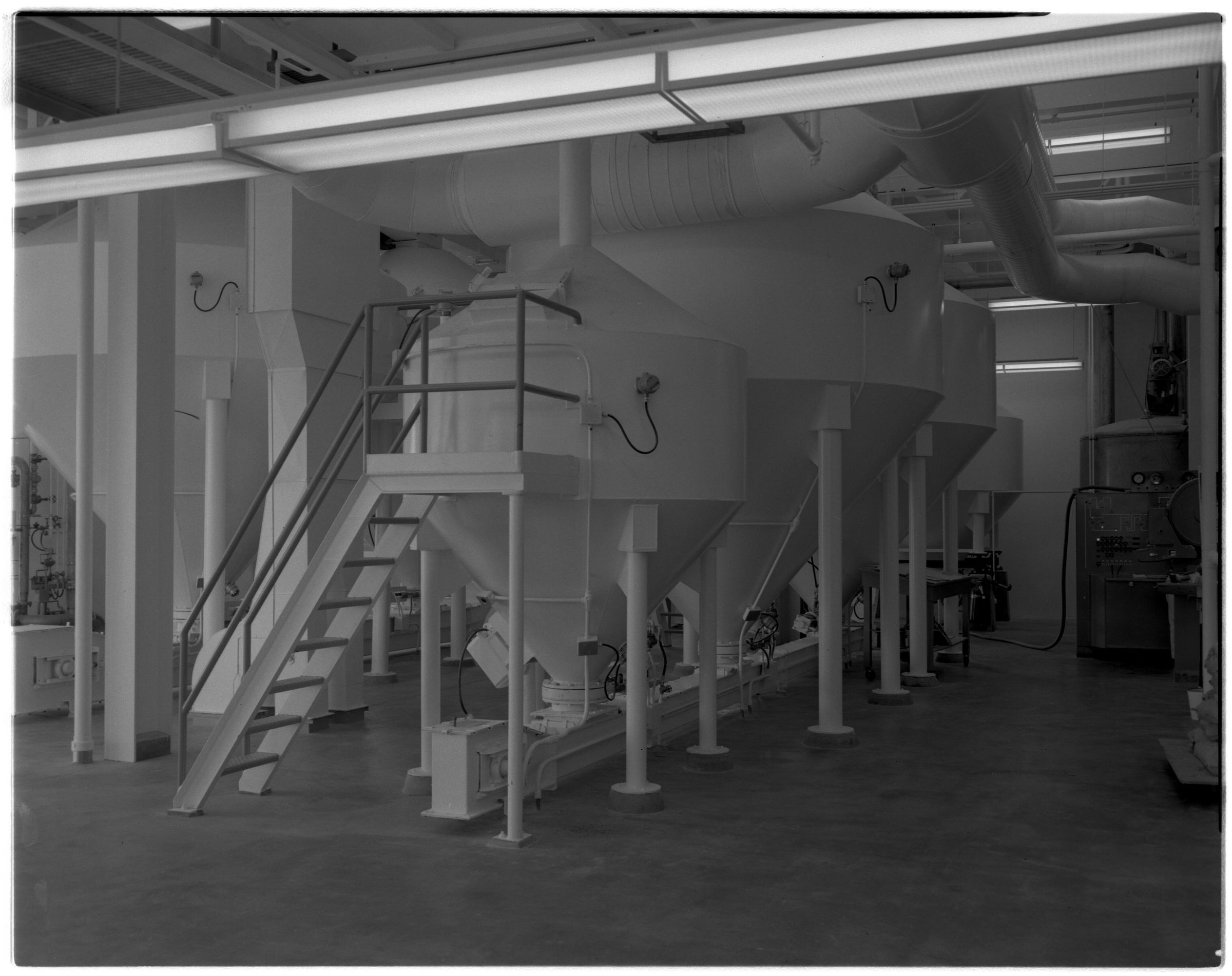 Negative, sheet film. 4 x 5 b&w. No. 7105. Oly. Brewing Co. PSF. Industries. Mr. Dexter. Malt handling equipment, bringing malt from storage tanks into brewhouse. Part of scale system shown.