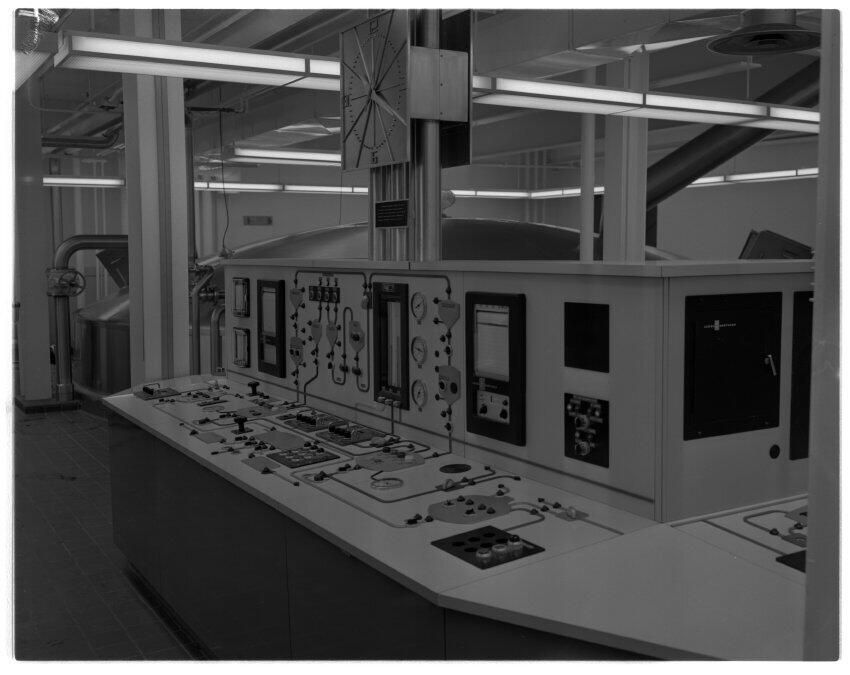 Negative, sheet film. 4 x 5 b&w. No. 3242. Olympia Brew Co. Leeds and Northrup Co. W.S. Randall Jr. 1311 Republican St. Seattle 9. Reordered 02/24/1961. Control panel for brewing vessels.
