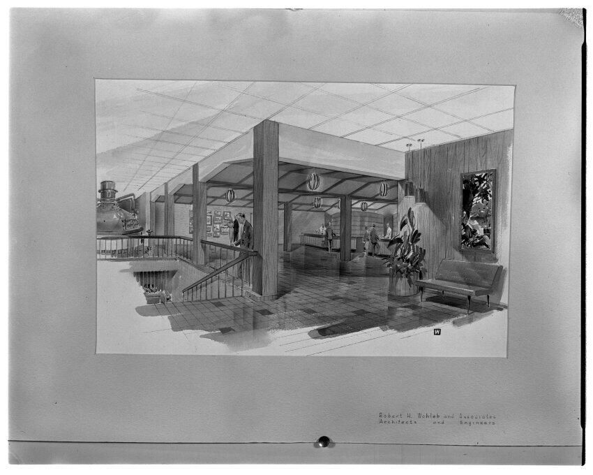 Negative, sheet film. 4 x 5 b&w. No. 3527. Olympia Brewery Co. Copy of artist's picture. Order finished 12/13/1961. New tap room drawing by Robert Wohleb.