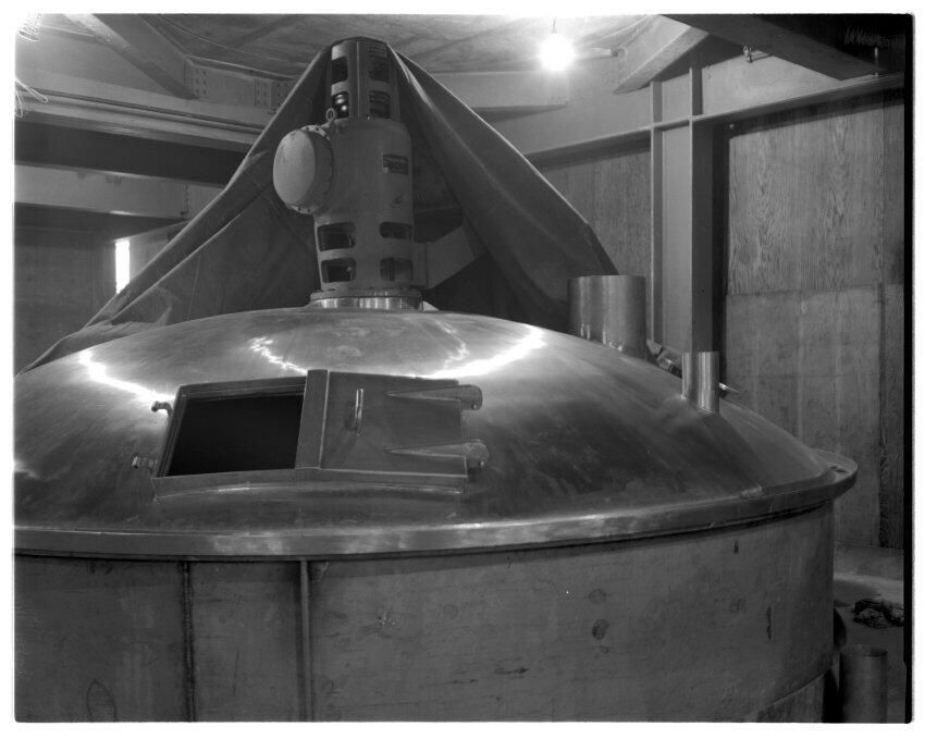Negative, sheet film. 4 x 5 b&w. No. 41. Salon (Solor?) Chicago. Oly Brew Co tanks. Cereal cooker nearing completion.