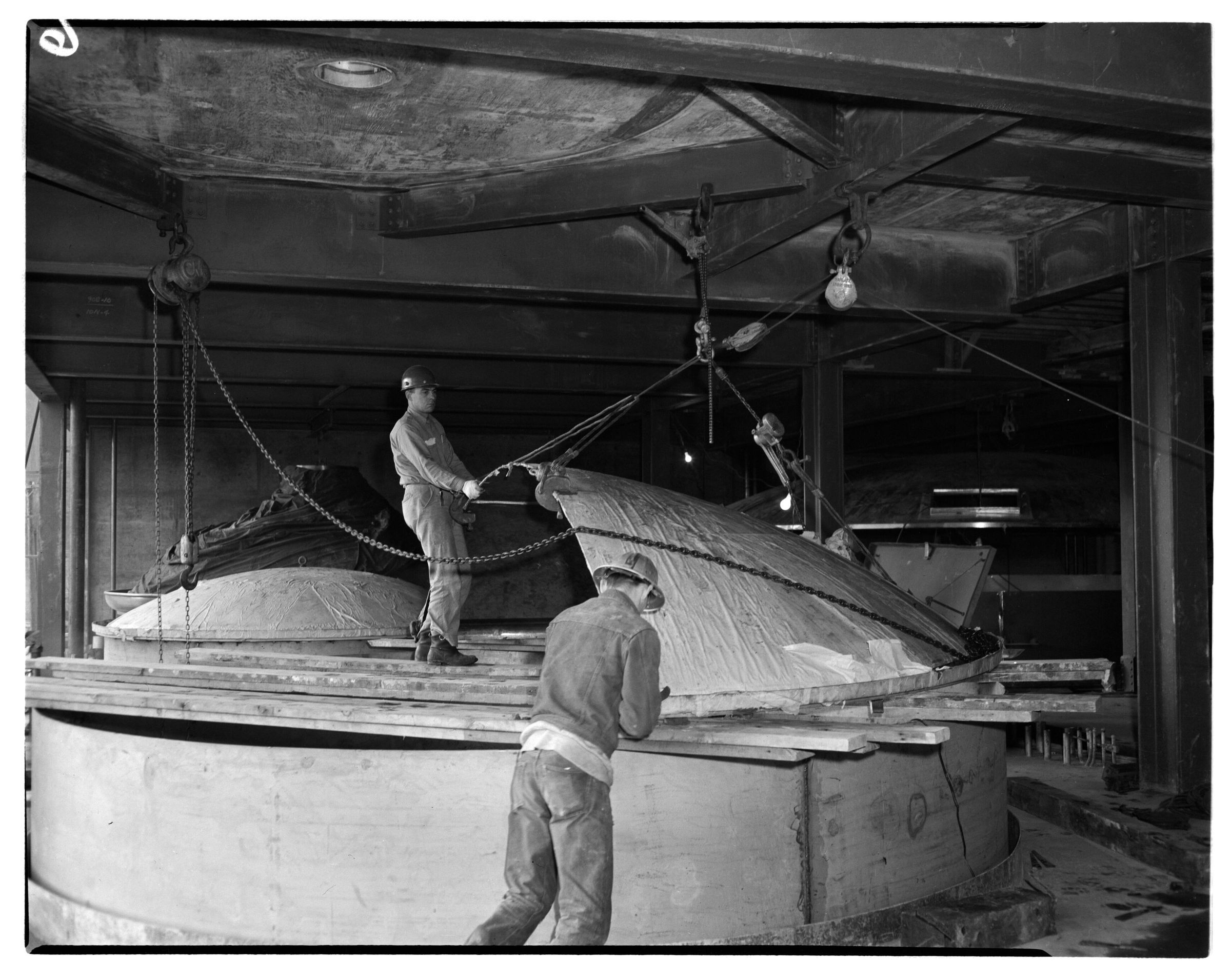 Negative, sheet film. 4 x 5 b&w. No. 40. Salon (Solor?) Chicago. Ordered 01/05/1960. Tank construction at Oly Brew.