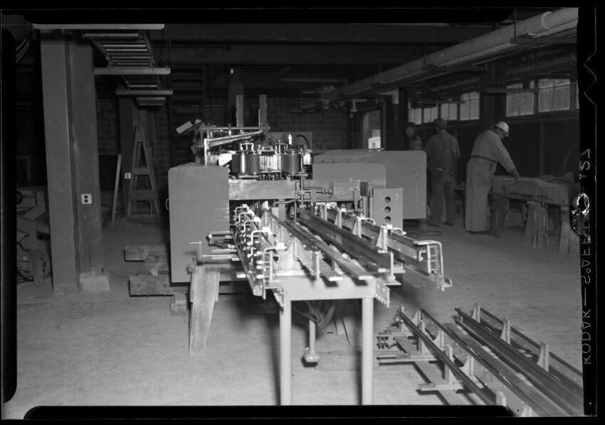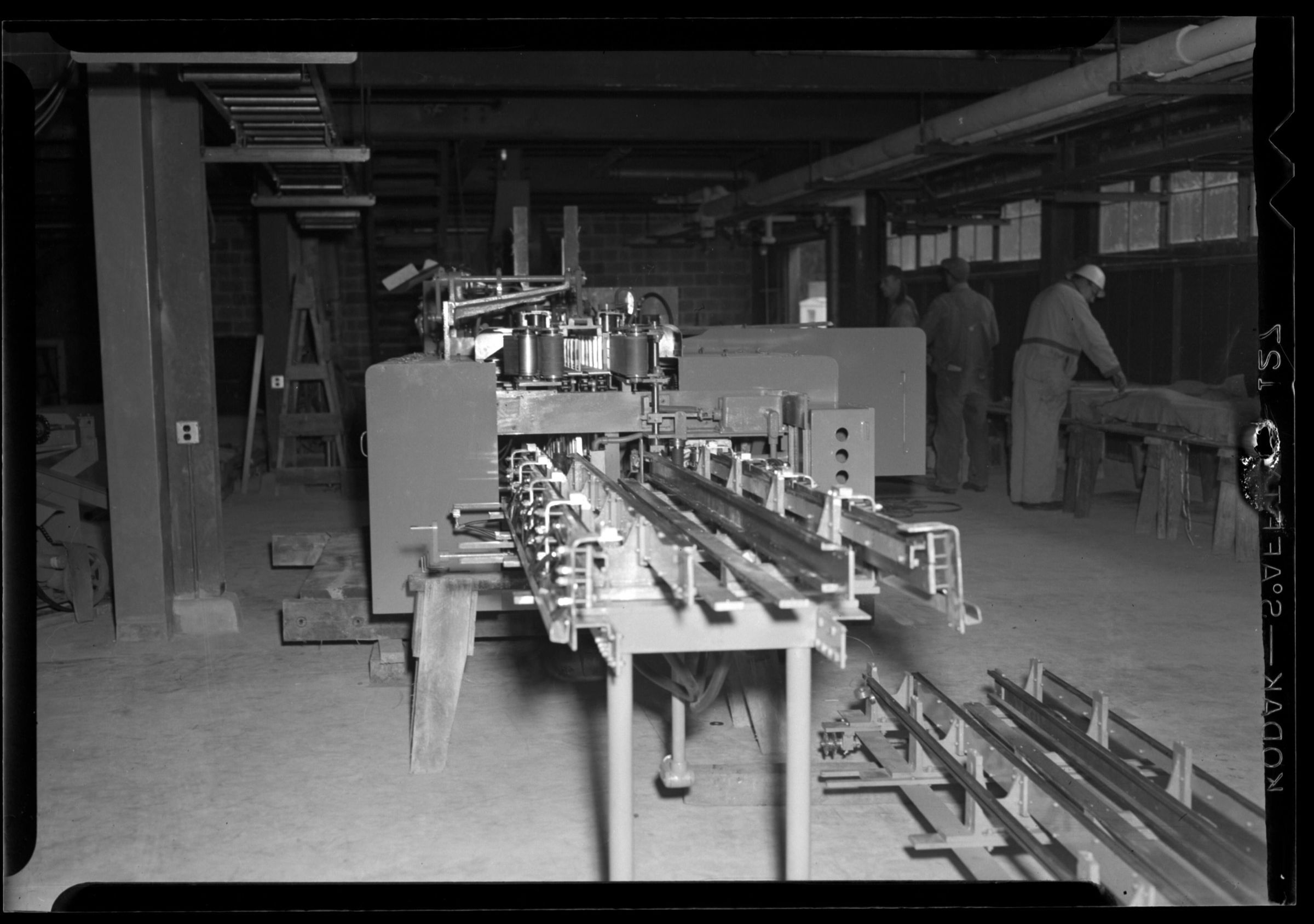 Negative, sheet film. 2 x 3 b&w. Jones packer. Dropped beer bottles into cardboard cases.