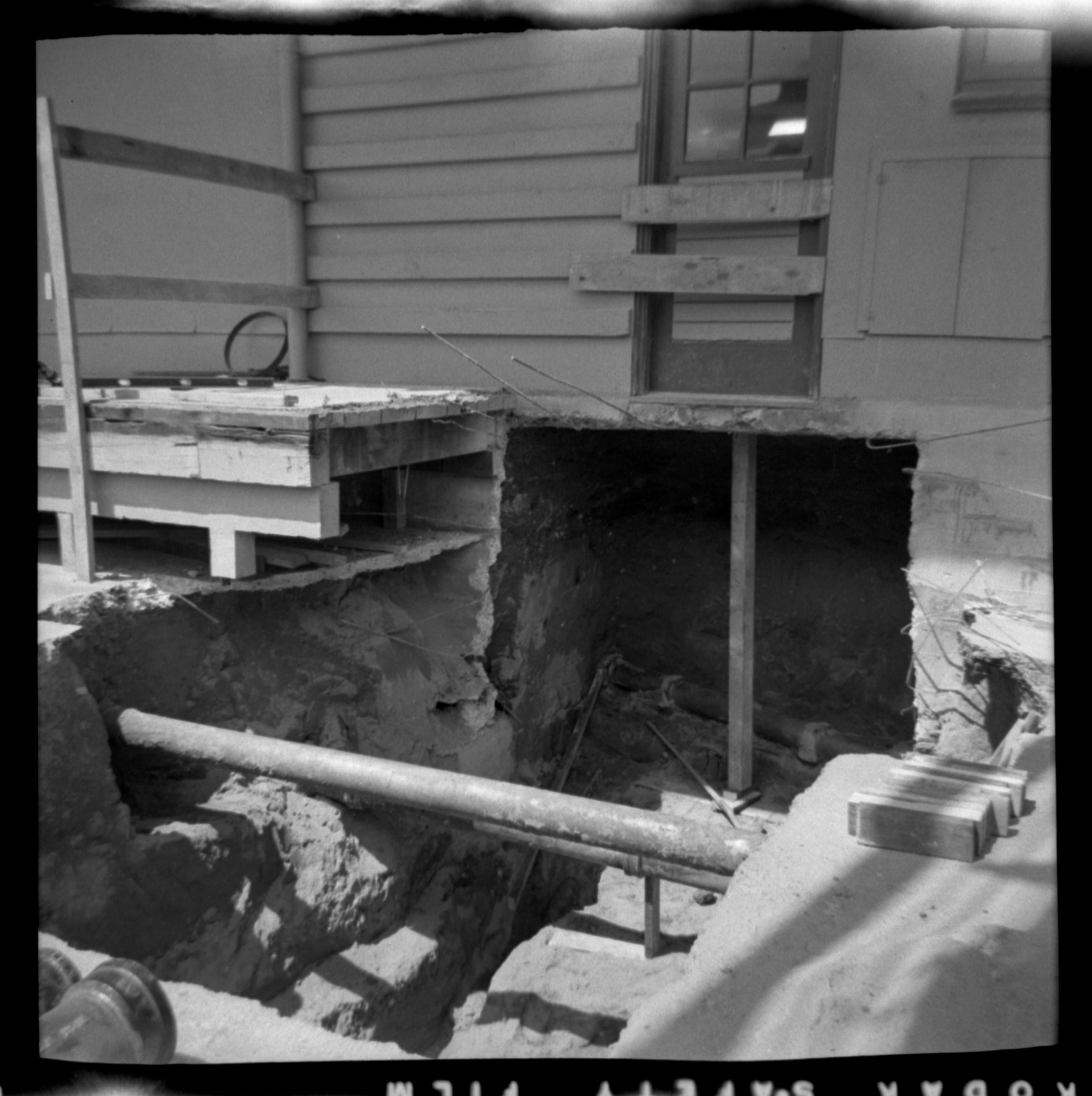 Negative, sheet film. 1.75 x 1.75 b&w. Construction/repair at Oly brewery.