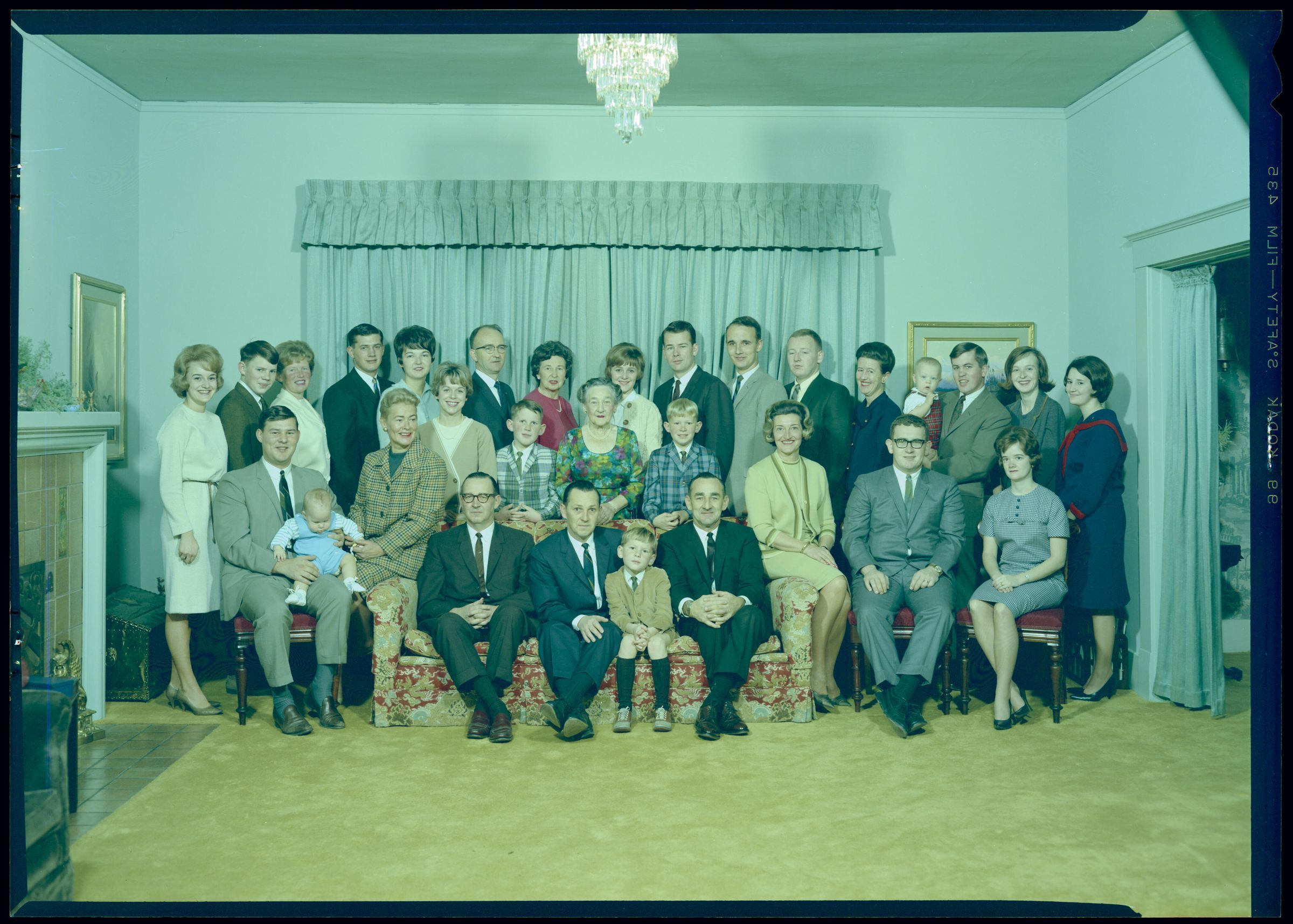 Negative, sheet film. 5 x 7 color. No. T489. Mrs Adolph Schmidt. Family in color, for Christmas, at Winifred Schmidt's house. Received 09/06/1966. Sent 11/28/1966.