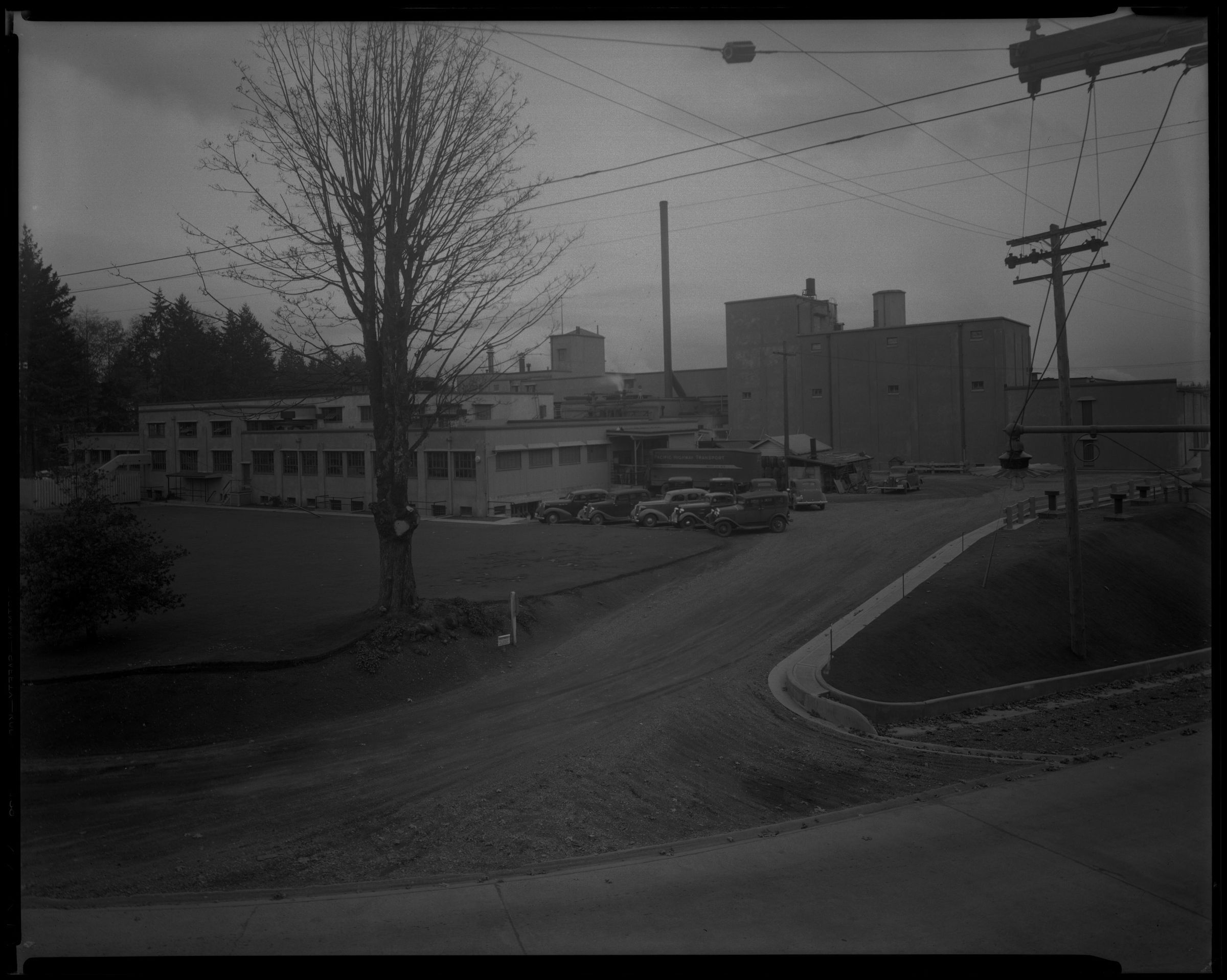 Negative, sheet film. 8 x 10 b&w. Olympia Brewing Co. E446-47-48. Looking southeast. Road to right is Boston Street, running down to bridge.