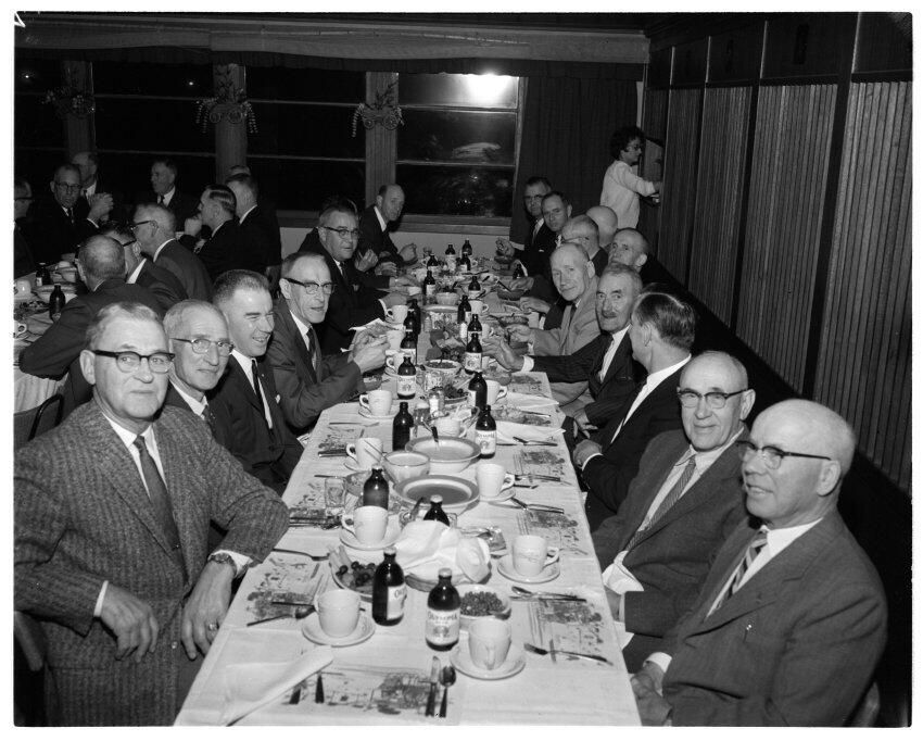 Negative, sheet film. 4 x 5 b&w. No. 3946. Olympia Brewing Co. old timers banquet. No ID on people.