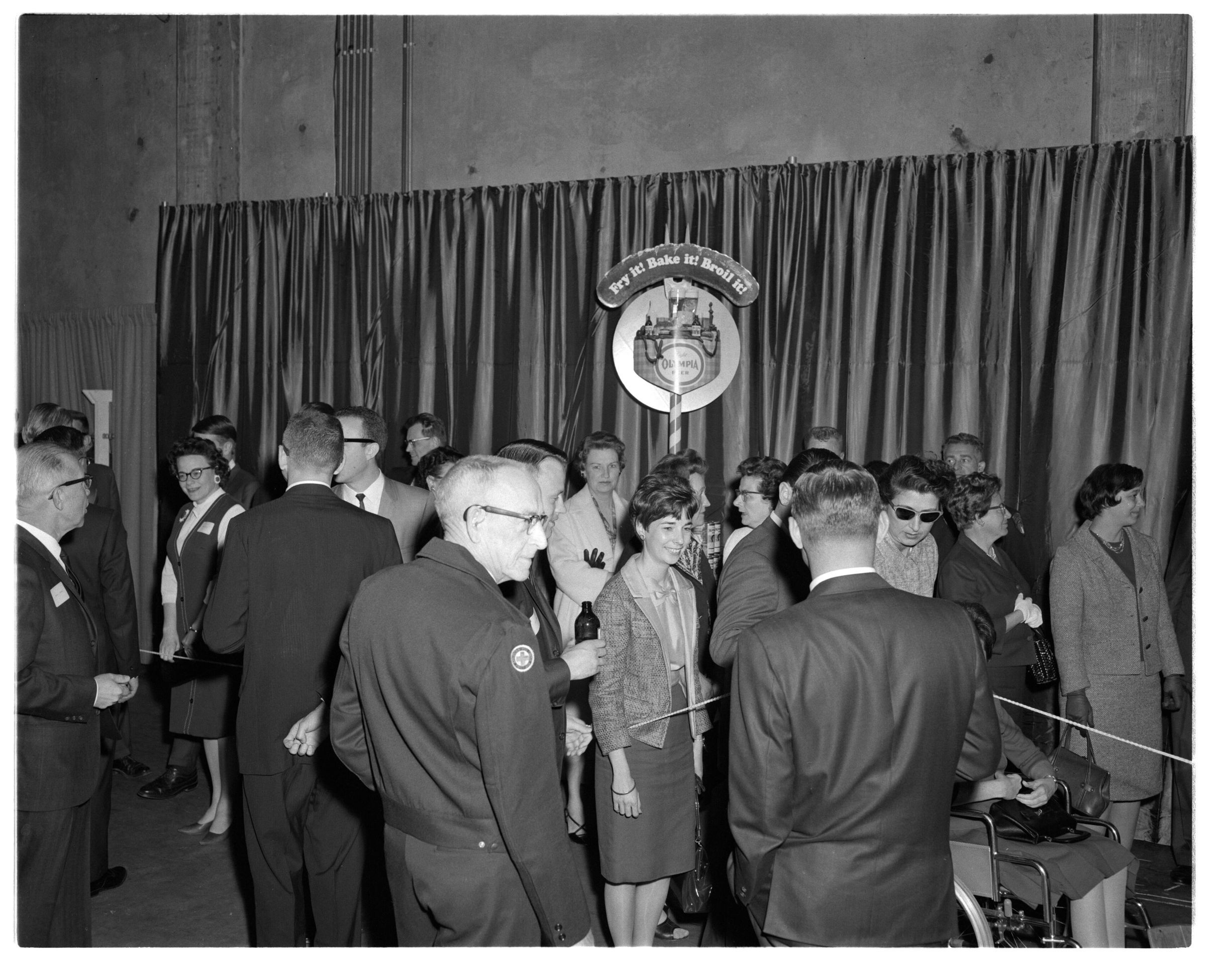 Negative, sheet film. 4 x 5 b&w. Olympia Brewing Co. stockholders meeting. No ID on people.