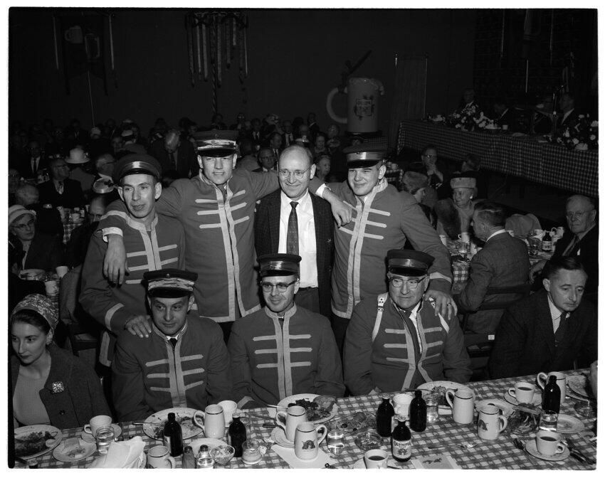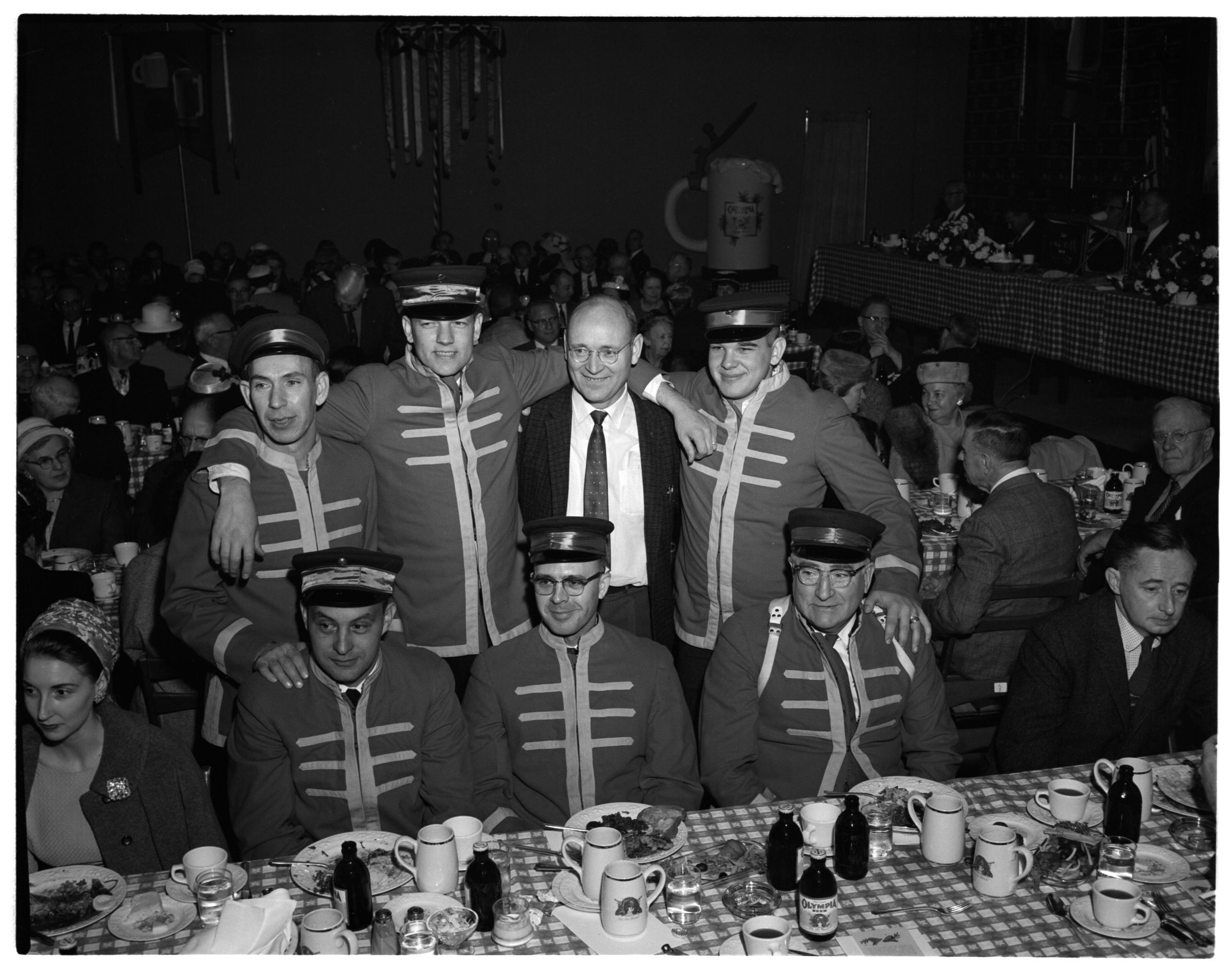 Negative, sheet film. 4 x 5 b&w. Olympia Brewing Co. stockholders party. No ID on people.