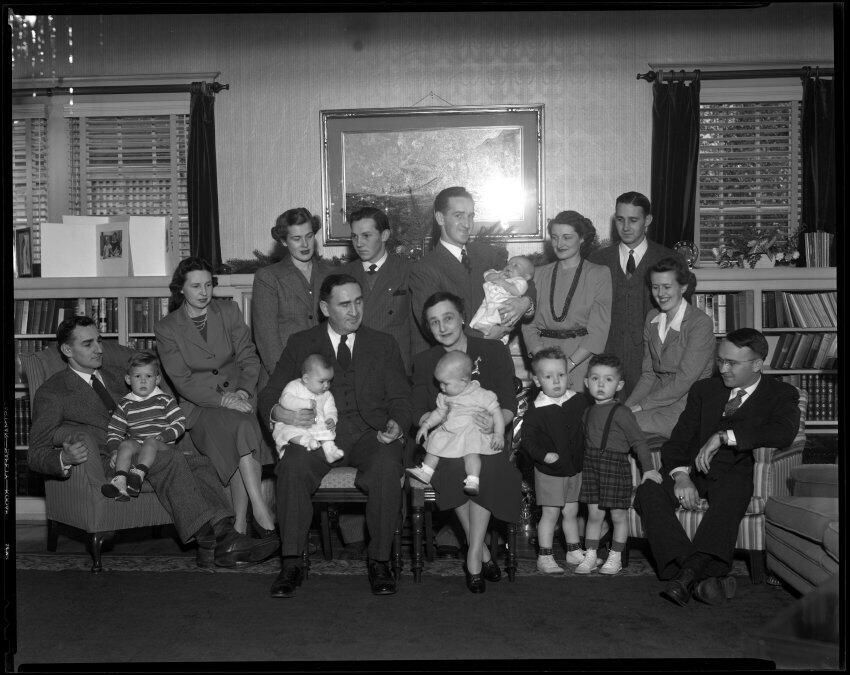 Negative, sheet film. 8 x 10 b&w. No. 9606. Family photo at Winifred Schmidt's house. Reordered Feb 10 Wed.