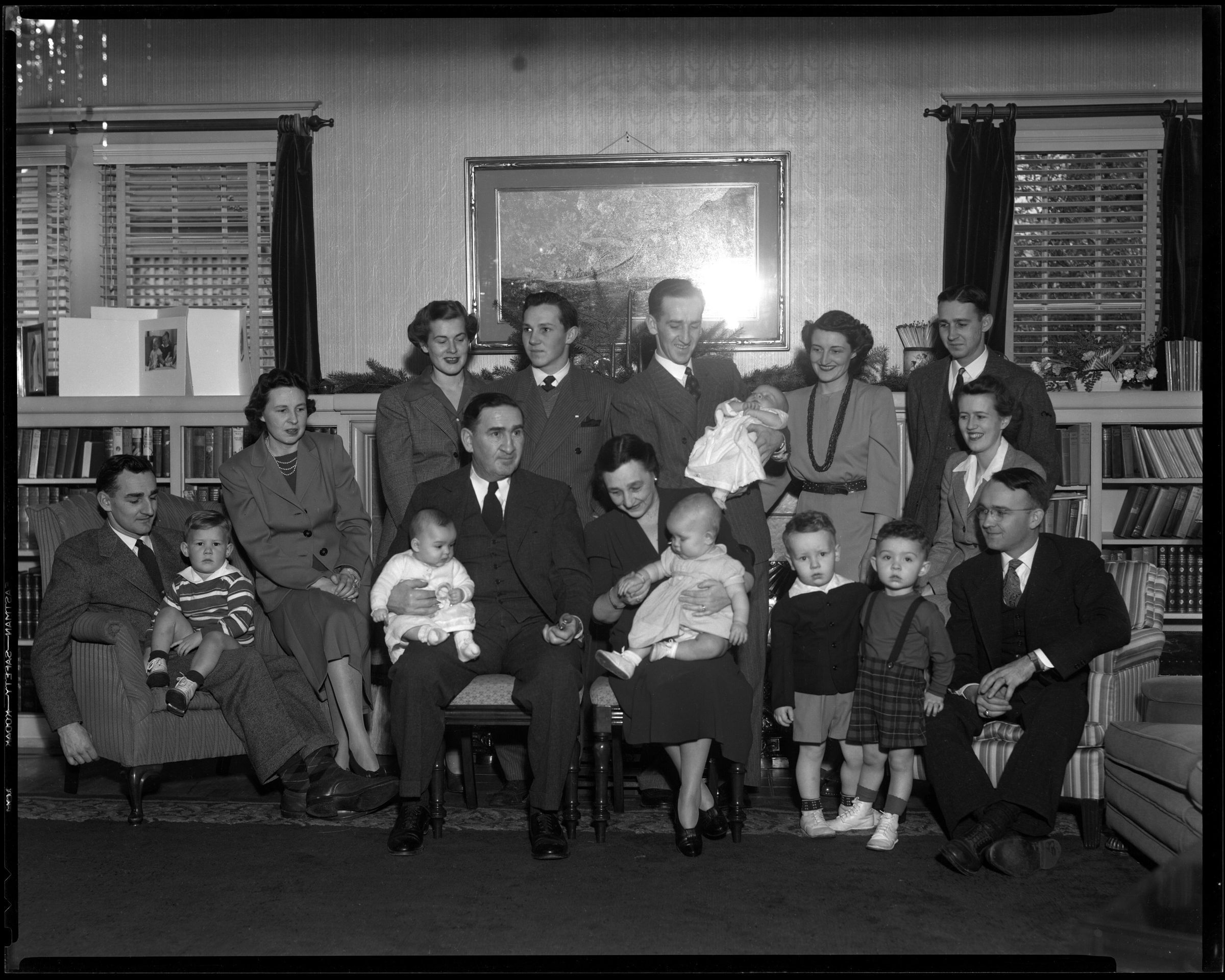 Negative, sheet film. 8 x 10 b&w. No. 9606. Family photo at Winifred Schmidt's house. Reordered Feb 10 Wed.