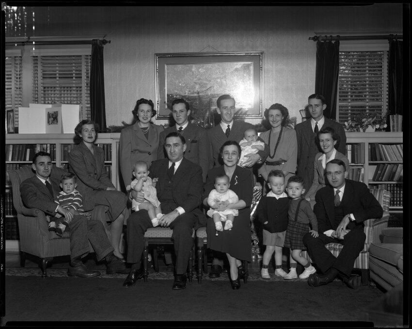 Negative, sheet film. 8 x 10 b&w. No. 9606. Family photo at Winifred Schmidt's house. Reordered Feb 10 Wed.