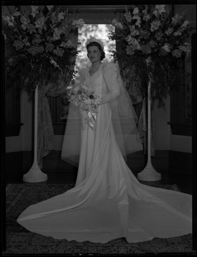 Negative, sheet film. 8 x 6 b&w. No. 6601. Wedding of Trueman Bink Schmidt and Virginia Aetzel.