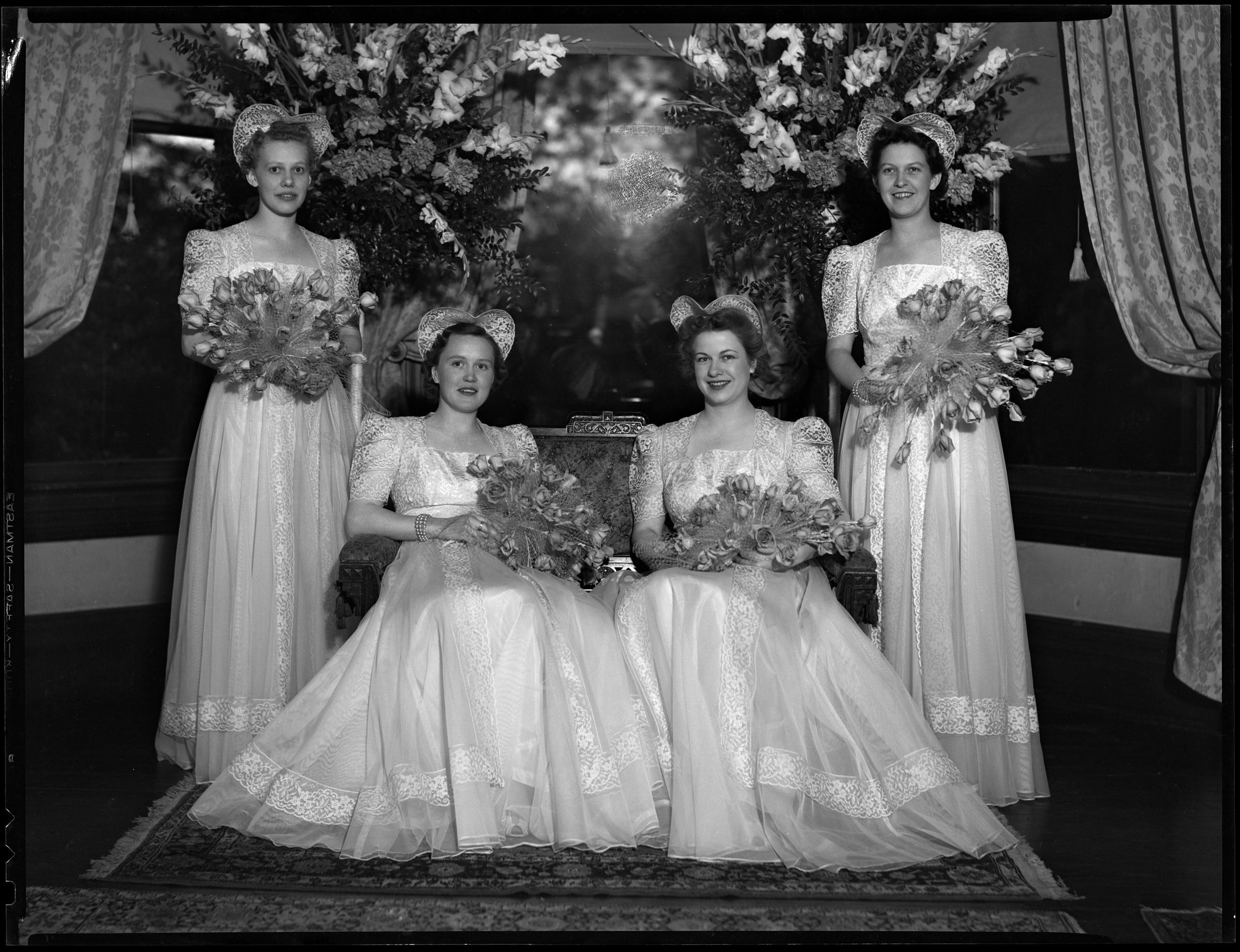 Negative, sheet film. 6 x 8 b&w. No. 6601. Wedding of Trueman Bink Schmidt and Virginia Aetzel. No ID on bridesmaids.