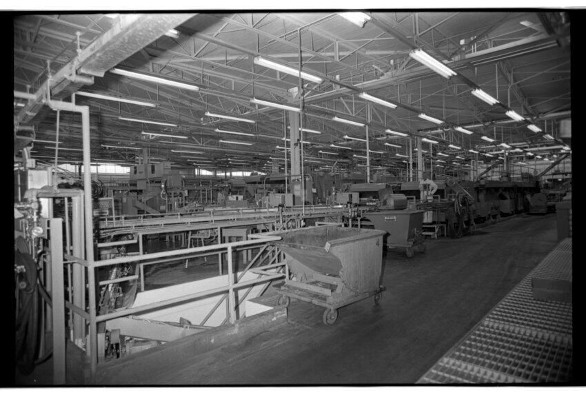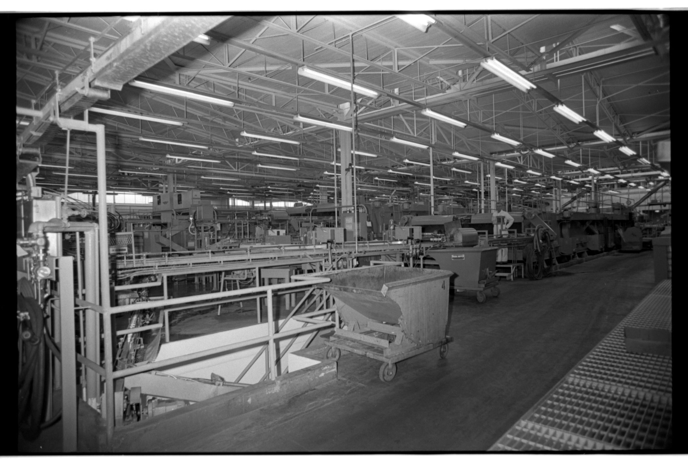 Negative, sheet film. 1 x 1.5 b&w. Packaging department.