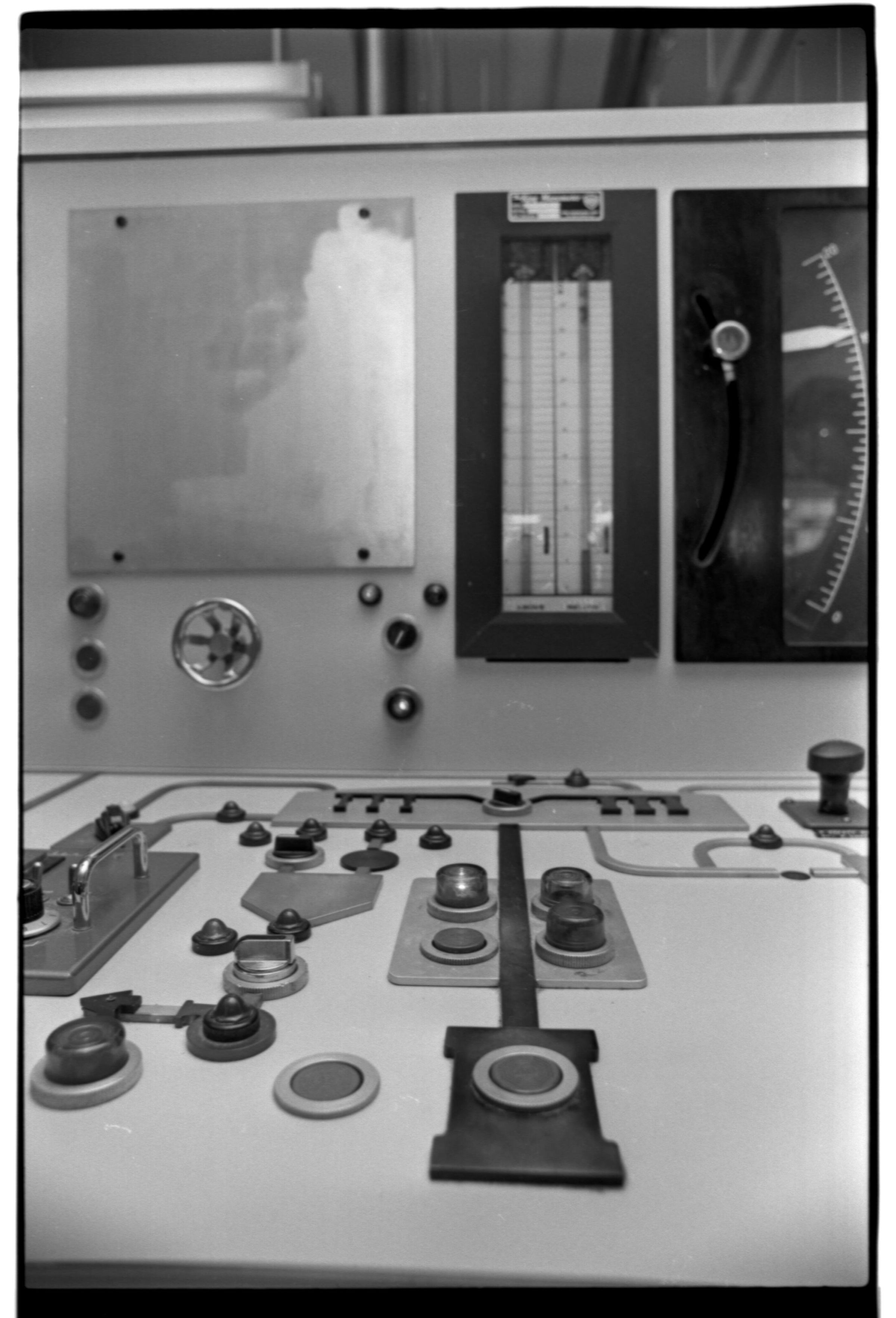 Negative, sheet film. 1.5 x 1 b&w. Brewhouse control panel.